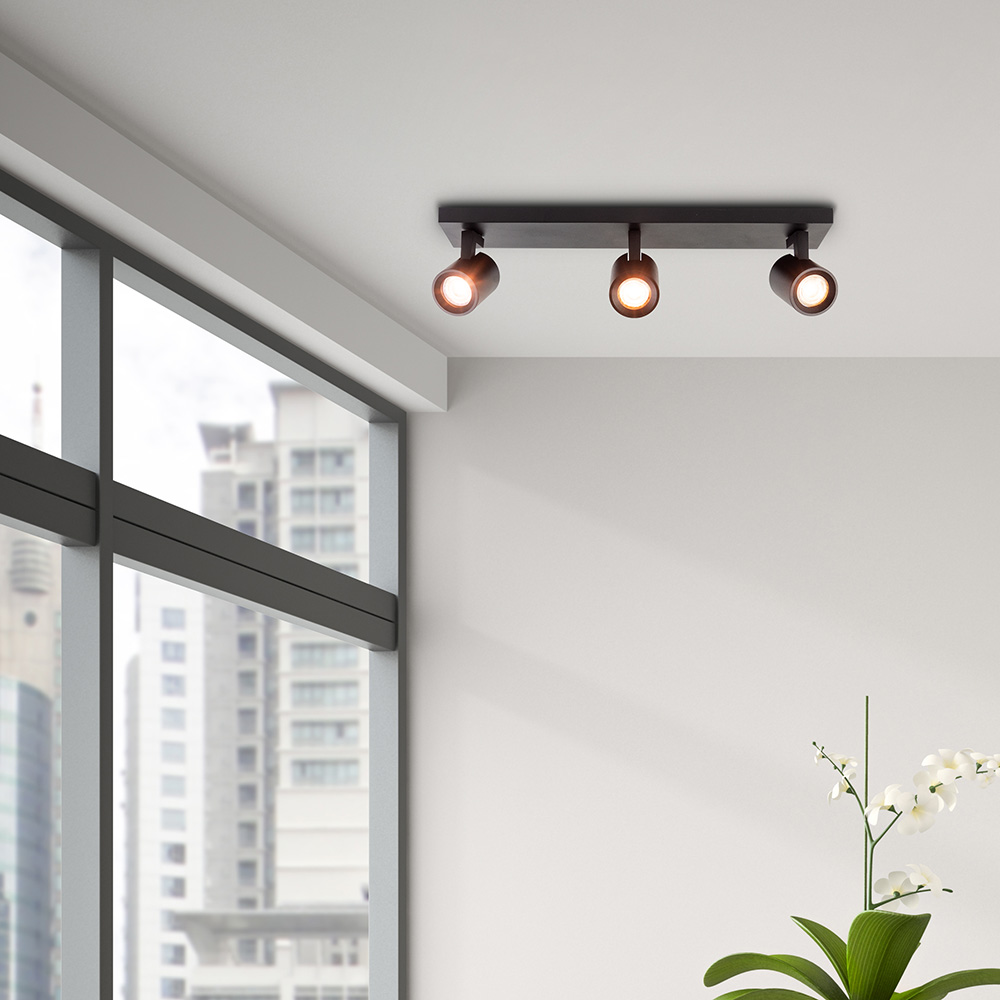 Geef jouw interieur een moderne upgrade met deze stijlvolle 3-lichts plafondspot in mat zwart. Het strakke, minimalistische ontwerp past perfect in zowel moderne als industriële woonstijlen. Dankzij de drie richtbare spots kun je het licht optimaal verdelen in de ruimte, ideaal voor het verlichten van bijvoorbeeld een eettafel, keukenblad of hal.