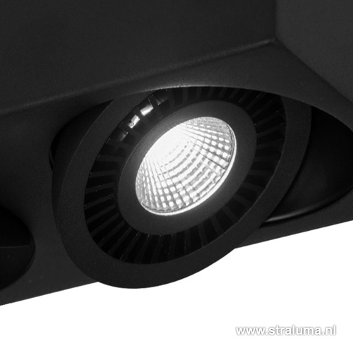 Deze zwarte plafondspot is multifuctioneel en zal goed staan in een modern/design interieur. De opbouwspot is gemaakt van staal en in mat zwart gespoten. Doordat de drie spots afzonderlijk van elkaar te richten zijn, is deze LED plafondlamp op vele plaatsen in huis inzetbaar.