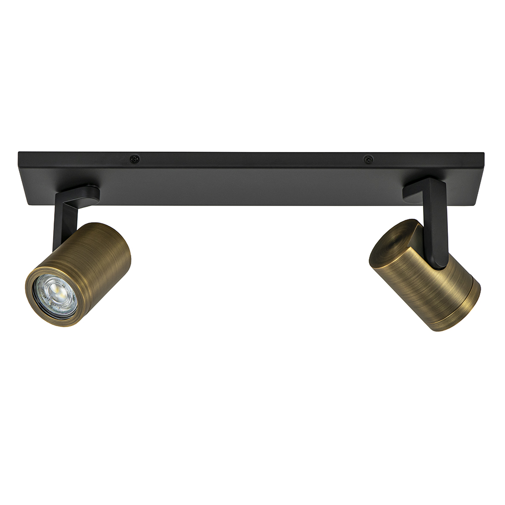 – afm: 40×9,5×15 cm – bevestiging: 40×9,5×1,5 cm – kappen: Ø6×8,5 cm – metaal – mat zwart/brons – verstelbaar – exclusief lichtbron (2x GU10) – dimbaar (exclusief)