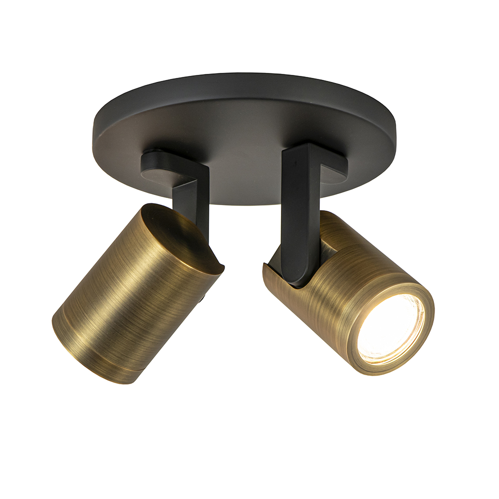 – afm: Ø17×15 cm – bevestiging: Ø17×1,5 cm – kappen: Ø6×8,5 cm – metaal – mat zwart/brons – verstelbaar – exclusief lichtbron (2x GU10) – dimbaar (exclusief)