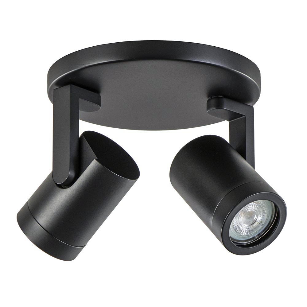 Een ronde plafondspot met een strakke vormgeving. De 2-lichts metalen opbouwspot is volledig afgewerkt in een mat zwarte finish waardoor deze een minimalistische look krijgt. Dit wordt extra benadrukt door de strakke pootjes van de spotjes en de platte bevestiging van maar 1,5 cm. De ronde spotjes hebben een afneembare ring die er gemakkelijk kan worden afgedraaid zodat de lichtbron kan worden geplaatst. De spotjes zijn zowel te draaien als te kantelen zodat u deze naar de gewenste richting kunt plaatsen. Ideaal voor in een hal of slaapkamer. De mat zwarte opbouwspot wordt geleverd zonder lichtbron (2x GU10).