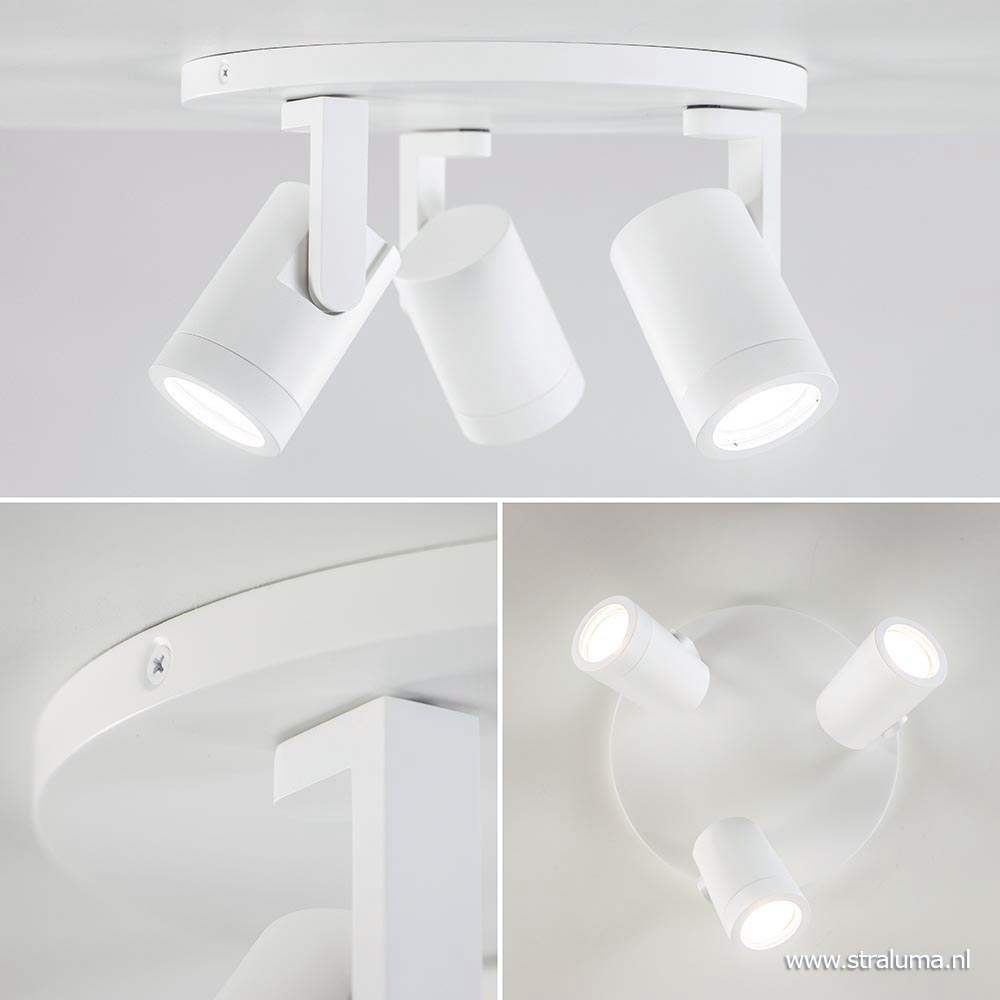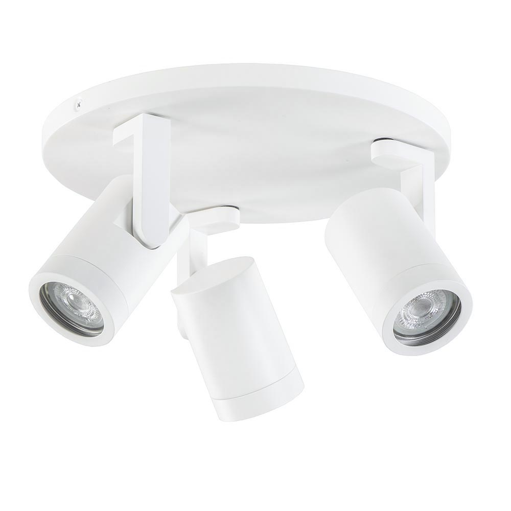 – hoogte: 15 cm – spots: Ø6×9 cm – bevestiging: Ø25×1,5 cm – metaal, mat wit – verstelbare spots – exclusief lichtbron (3x GU10) – dimbaar (exclusief)