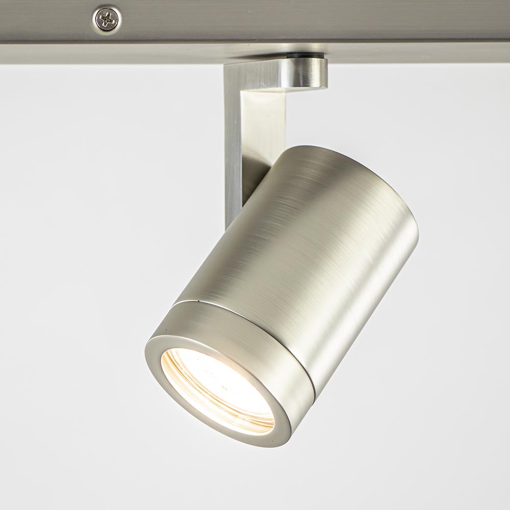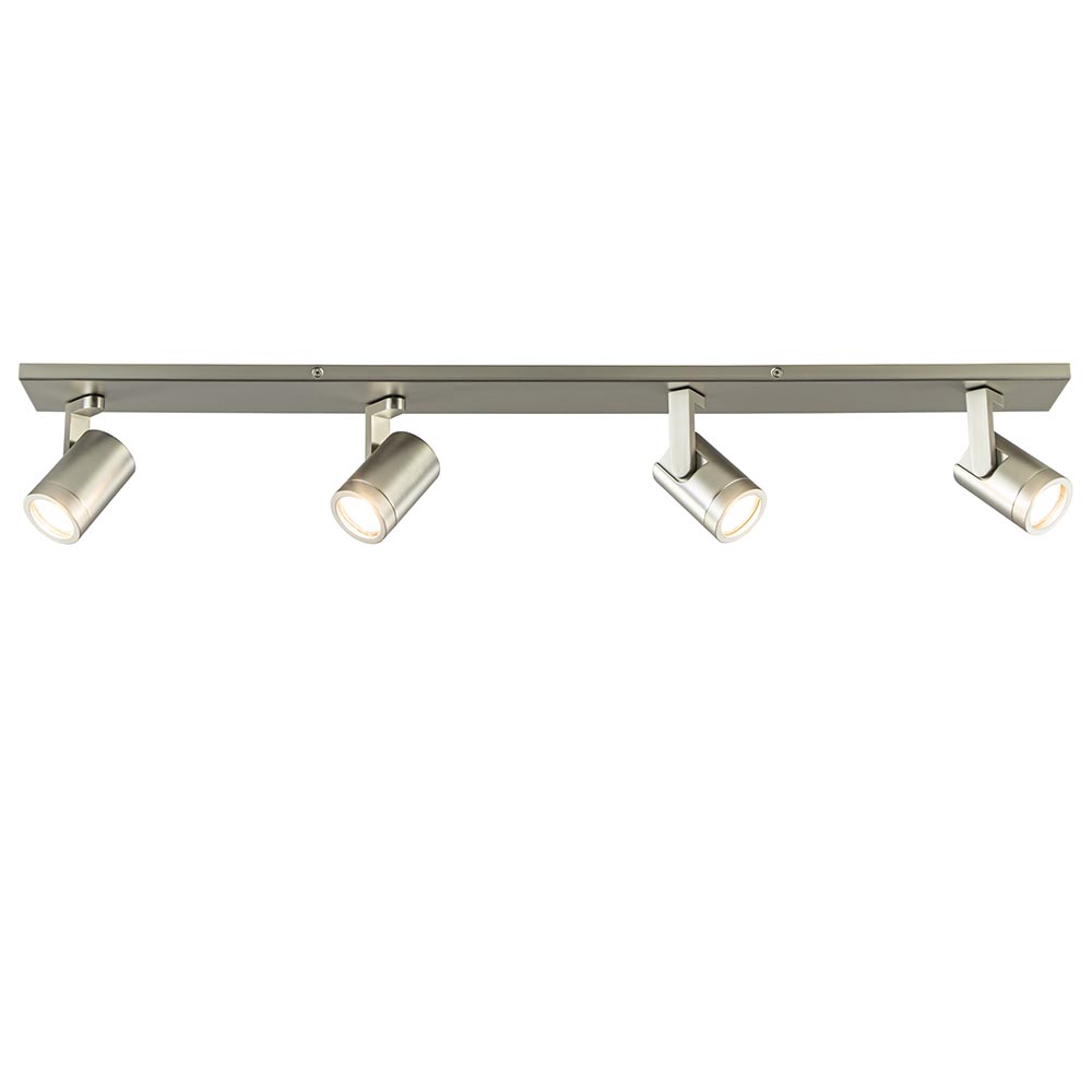 Ideaal voor in een lange smalle kamer of hal. Deze 4-lichts opbouwspot zorgt voor voldoende licht en doordat de spots zowel te kantelen als te draaien zijn, stelt u de spots gemakkelijk en snel naar de juiste richting. De ronde spots zijn voorzien van een afneembare ring zodat de lichtbron gemakkelijk geplaatst kan worden. De metalen kapjes zijn bevestigd op een L-vormig pootje die is bevestigd op de metalen plafondbalk. De plafondspot krijgt door de matte nikkel afwerking een strakke look die mooi past in diverse woonstijlen.