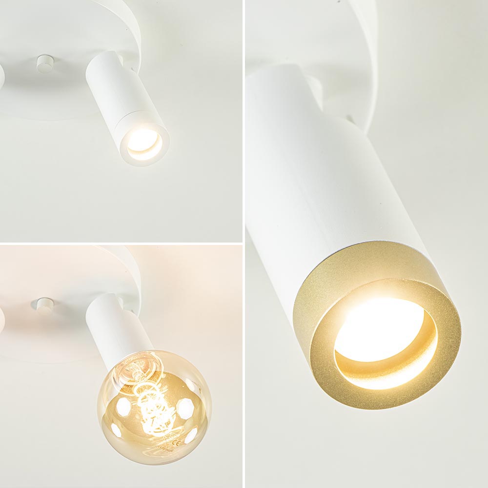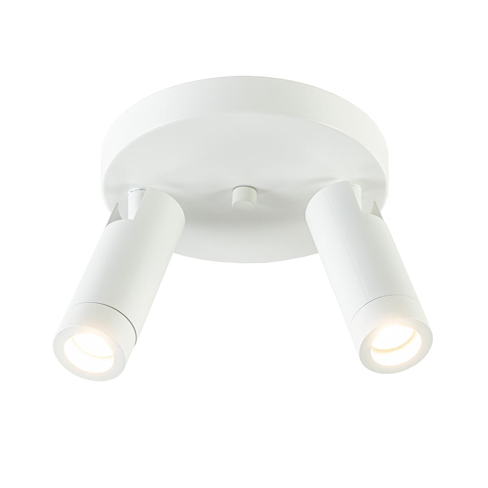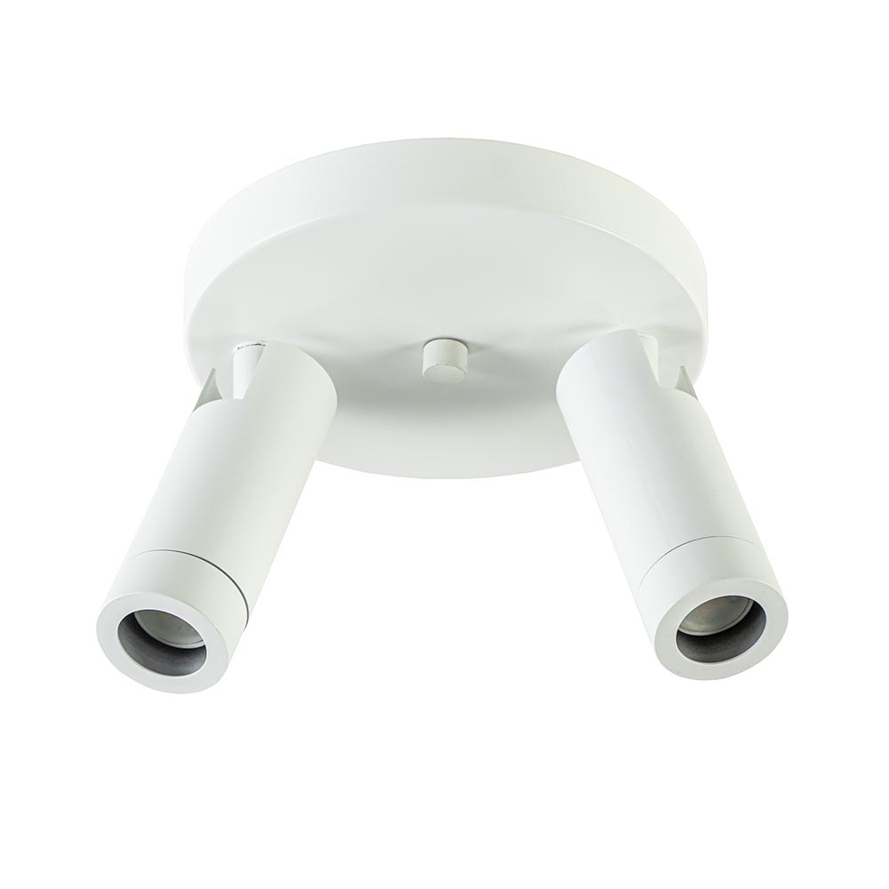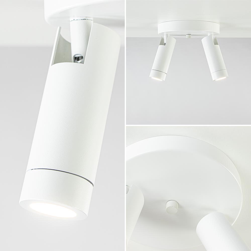 Een moderne ronde 2-lichts plafondspot met strakke vormgeving. Deze 2-lichts plafondspot is gemaakt van mat wit metaal. De spotjes zijn los van elkaar verstelbaar. Ideaal om meerdere aspecten van een ruimte tegelijk uit te lichten. De lamp past goed in een hal of de slaapkamer. Het leuke aan deze spot is dat hij wordt geleverd met zowel een mat witte als een goudkleurige fitting ring. U kunt er zelfs voor kiezen de fitting ring weg te laten en de 2-lichts spot af te maken met grotere lichtbronnen. Zo kiest u zelf welke look u wilt.