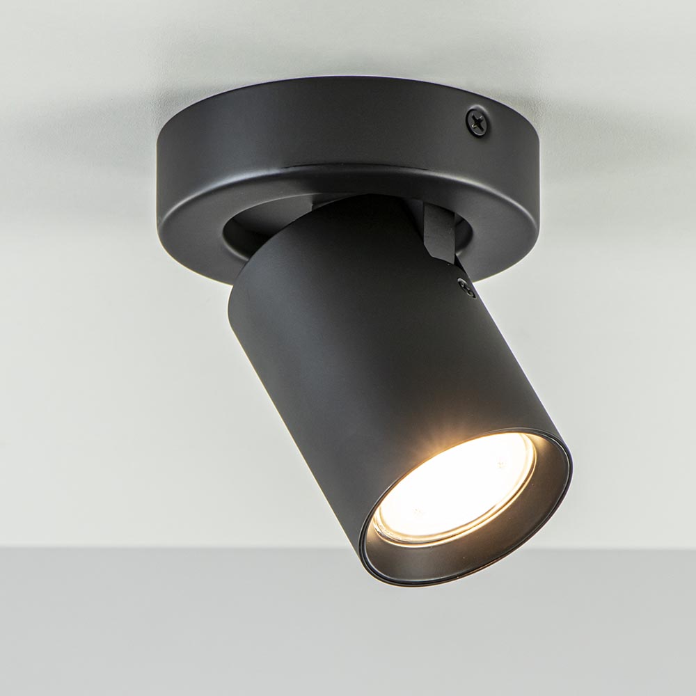 Plafondspots, ze zijn erg handig en functioneel. Zo is deze 1-lichts plafondspot zwart zeer geschikt voor het belichten van een donkere hoek in de gang of voor het belichten van bijvoorbeeld foto’s of een schilderij aan de wand. De spot van deze mat zwart plafondlamp is in richting verstelbaar door deze te kantelen en/of te draaien. De spot wordt exclusief lichtbron en dimmer geleverd. Met de juiste dimmer is de 1-lichts wel dimbaar. De zwarte opbouwspot kan ook als wandlamp dienen.