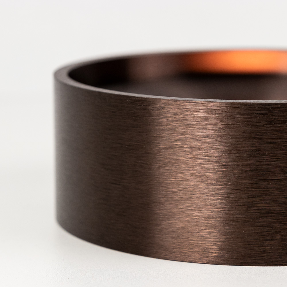 Mooie strakke spot geschikt voor bijna elke ruimte op vochtige ruimtes na. Deze spot wordt geleverd in 3 kleuren. Brons, champagne en zwart. De meest trendy kleuren van dit moment. Ideaal van deze spot is de hoogte, hij is maar 5 cm hoog waardoor hij super strak tegen het plafond kan. Hij wordt geleverd met geintegreerd LED met 900 lumen en 2700 kelvin. Kortom een mooie warme kleur licht en goede lichtopbrengst. Wanneer u wilt kunt hem ook dimmen via een externe dimmer aan de wand. Deze wordt niet meegeleverd.