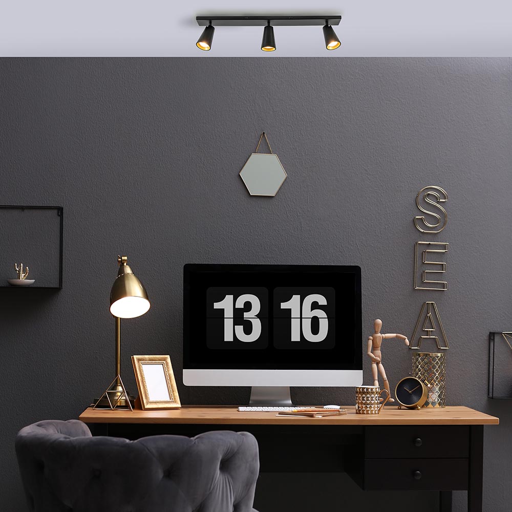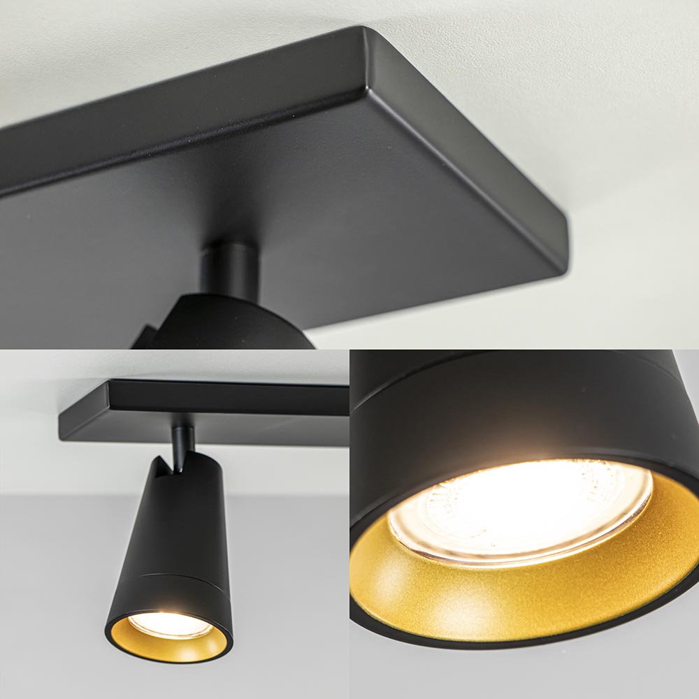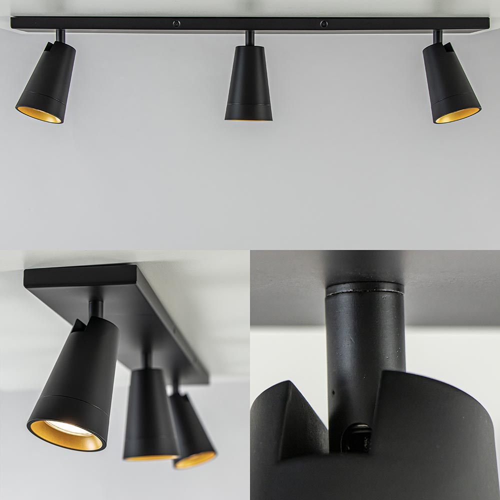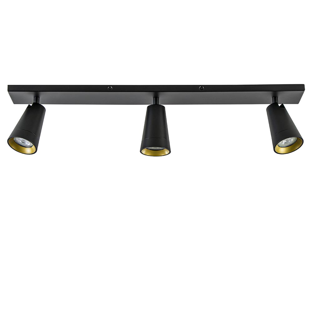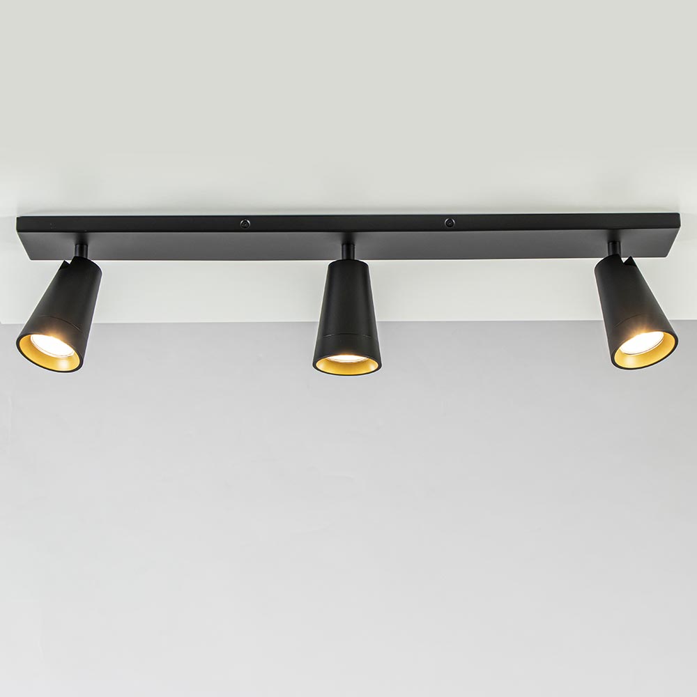 Perfect voor uw woonkamer, keuken of slaapkamer. Deze 3-lichts opbouwspot is verstelbaar door de spots te draaien of kantelen zodat u deze altijd naar de juiste richting kunt plaatsen. De opbouwspot is volledig van metaal en voorzien van een mat zwarte finish. Leuk accent is de gouden binnenzijde van de ring. De combinatie van het zwart en goud maakt de opbouwspot ook prima geschikt voor diverse woonstijlen. U kunt de GU10 lichtbronnen gemakkelijk plaatsen door de bovenzijde van de spots los te draaien. De lichtbronnen zijn niet inbegrepen. De 3-lichts plafondlamp is dimbaar met de juiste dimmer (exclusief).