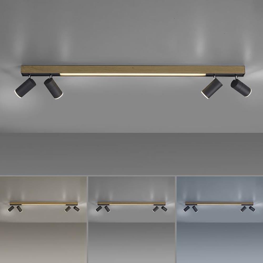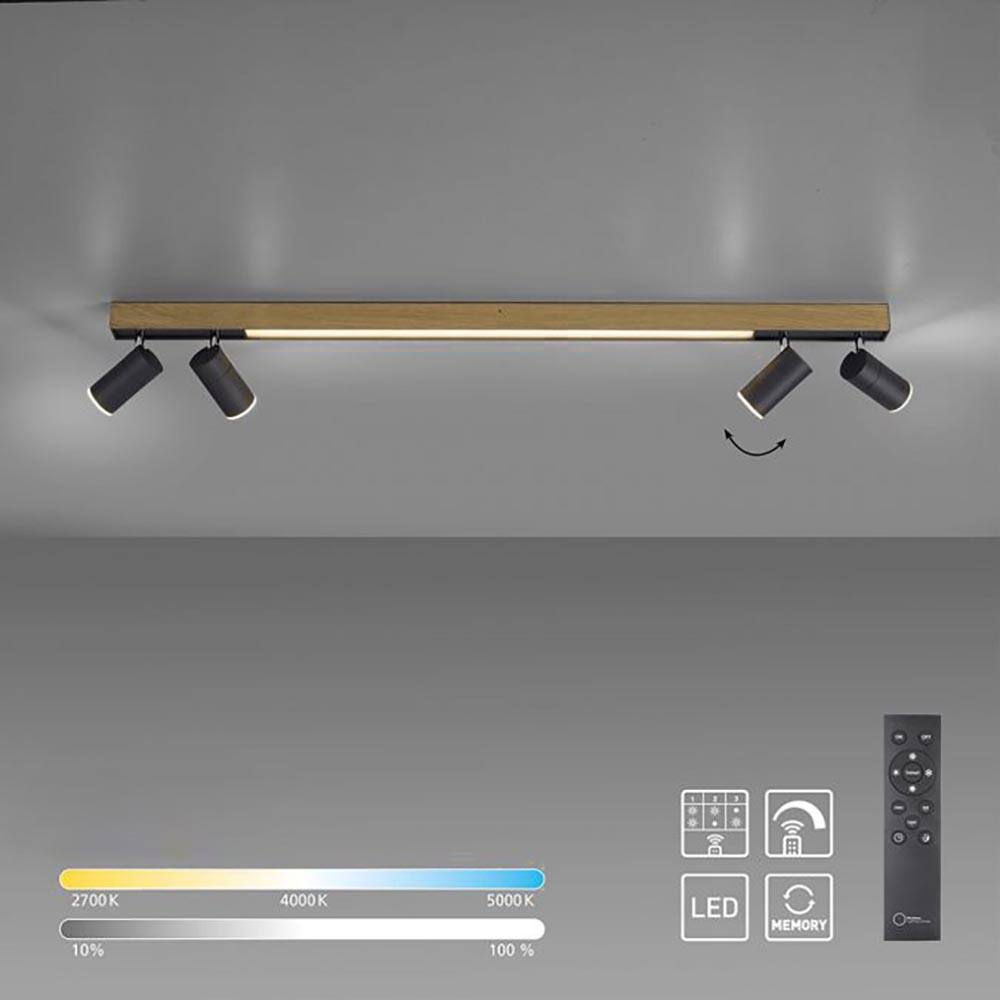 – afm: 120x19x15,5 cm – bevestiging: 110×5 cm – spots: Ø5×10 cm – metaal/antraciet – geolied eikenhout – inclusief LED – 1280 lumen – 2700-5000 Kelvin – dimbaar – memory