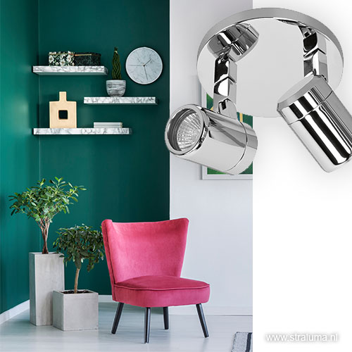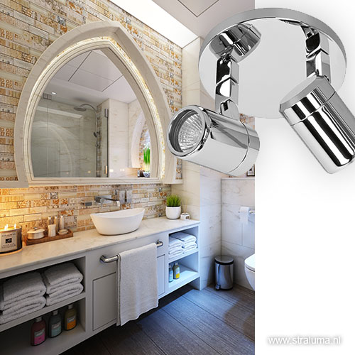 / Lampen / Opbouwspots / Plafondspot Rain 2l rond chroom IP44