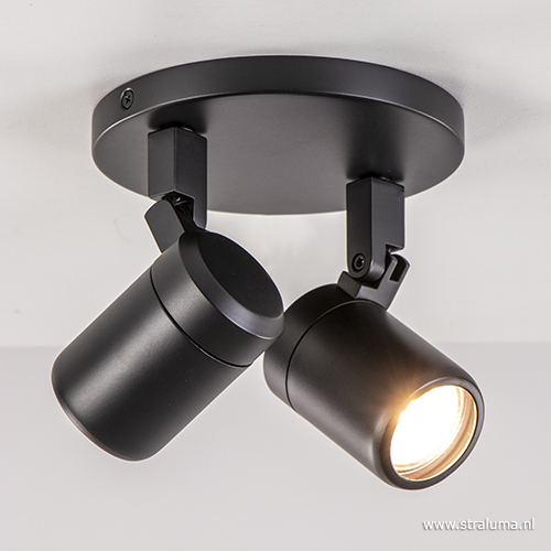 / Lampen / Nachtkastlampen / Plafondspot Rain 2L rond zwart IP44