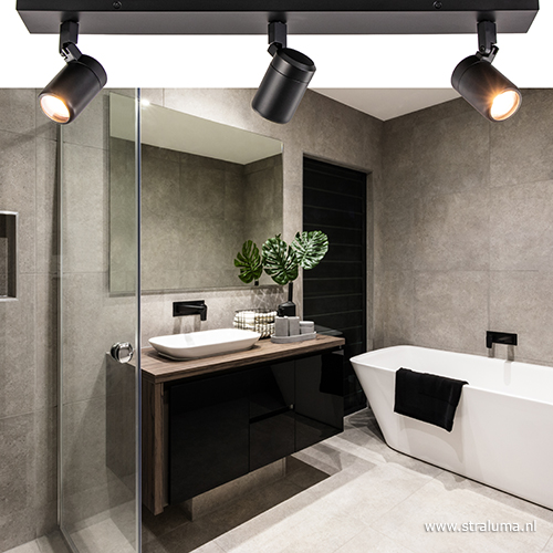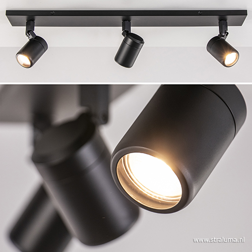 / Lampen / Nachtkastlampen / Plafondspot Rain 3L balk zwart gu10 IP44