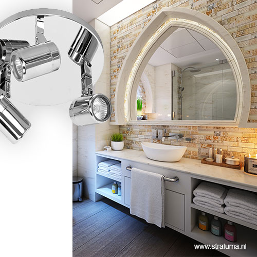 / Lampen / Opbouwspots / Plafondspot Rain 3l rond chroom IP44