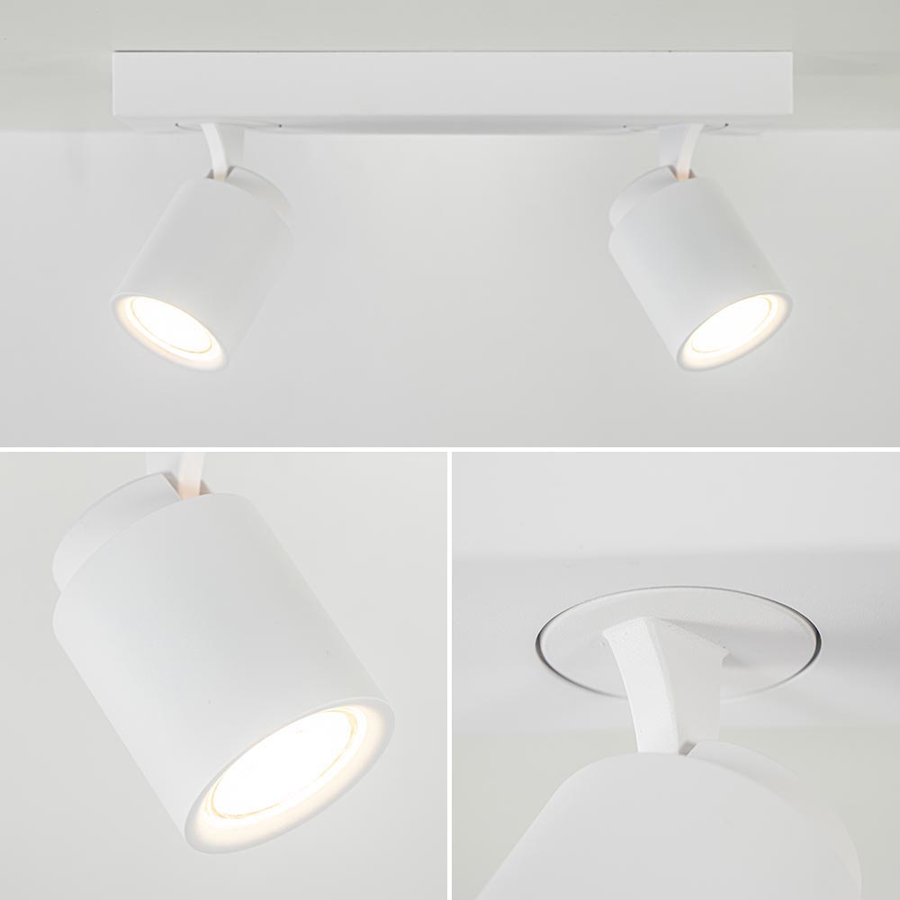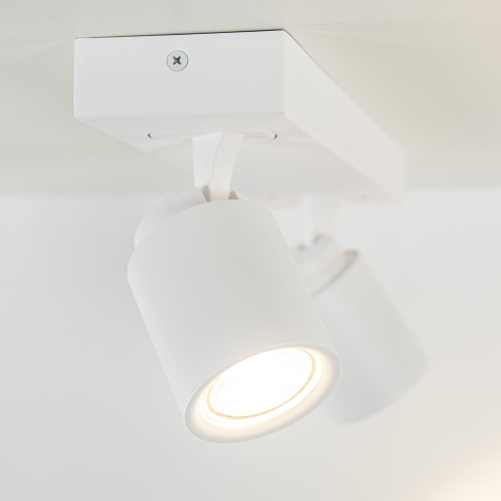 Ideaal voor in de hal of slaapkamer. Deze opbouwspot is gemakkelijk toe te passen in diverse woonstijlen. De 2-lichts plafondlamp is gemaakt van metaal en uitgevoerd in het wit. De twee spotjes zijn gemakkelijk te verstellen door deze te draaien of te kantelen. Zo kunt u gemakkelijk de juiste richting bepalen en zo een donkere hoek of object uitlichten. De witte plafondspot wordt geleverd zonder lichtbron. De lichtbron kan worden geplaatst door de volledige kap van de spot los te draaien.