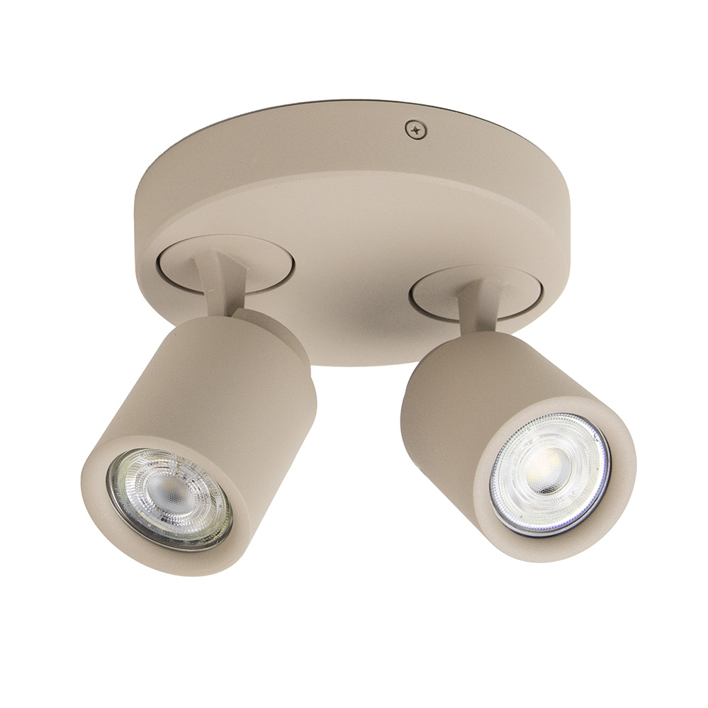 Op zoek naar een elegante plafond- of wandlamp? Dan is de zand kleurige 2-lichts opbouwspot Razza rond echt iets voor u! De matte zand kleur zorgt voor zowel een chique als stoere toevoeging aan uw interieur. De 2-lichts spot is multifunctioneel te gebruiken, doordat de spots in richting versteld kunnen worden. De kapjes kunnen gekanteld en gedraaid worden, ideaal zodat u de spots naar elke gewenste richting kunt plaatsen. De lichtbron kan geplaatst worden door de kap volledig los te draaien.