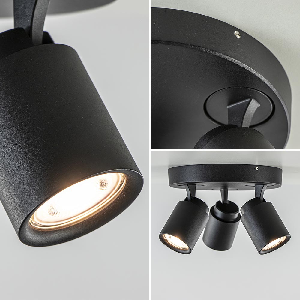 – hoogte: 16 cm – spots: Ø6,5×9 cm – bevestiging: Ø21×3 cm – metaal – mat zwart – verstelbaar – exclusief lichtbron (3x GU10) – dimbaar (exclusief)