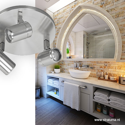 Plafondspot rond Rain 3-l nikkel IP44