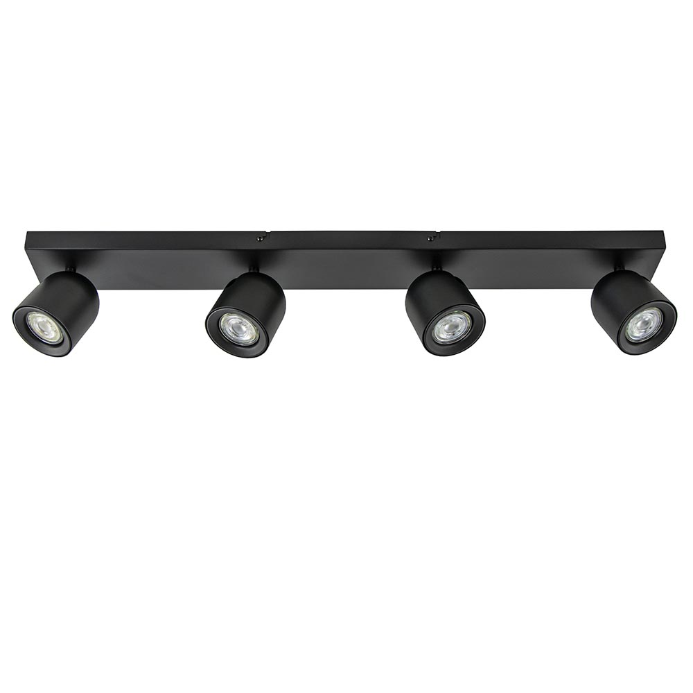 Ideaal voor in een hal, slaapkamer of gewoon als extra sfeer in de woonkamer. Deze 4-lichts opbouwspot kan het allemaal. De spots zijn bevestigd op een langwerpige plafondplaat en zijn volledig naar wens te verstellen door deze te draaien en/of te kantelen. De zwarte spots worden geleverd exclusief lichtbron (GU10). De lichtbron wordt gemakkelijk geplaatst door het binnenkapje te verwijderen en weer terug te plaatsen. Leuk aan deze plafondspot is dat er ook een gouden kapje mee wordt geleverd zodat u zelf kunt kiezen welke u wilt toepassen.