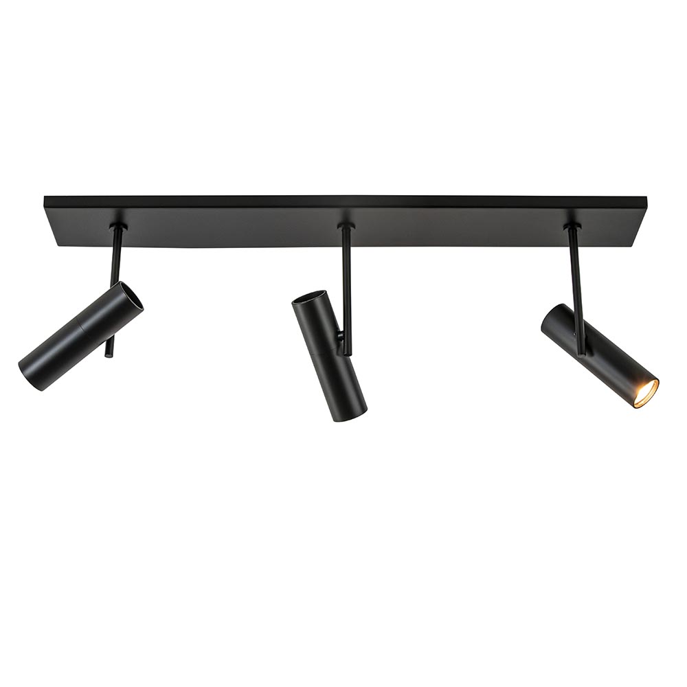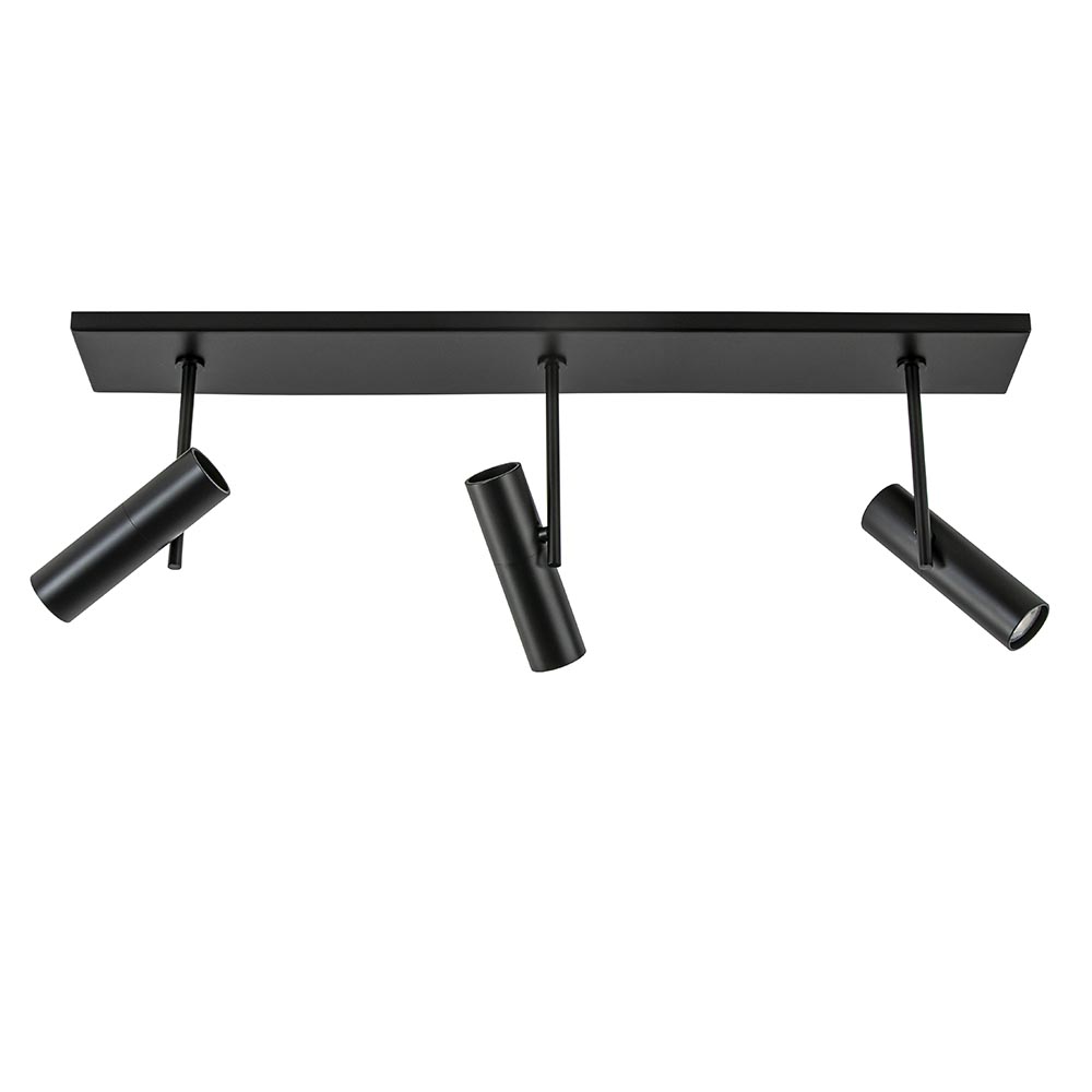 Strak van design en functioneel in gebruik. Deze 3-lichts opbouwspot is een perfecte aanvulling voor een hal, slaapkamer of overloop. De 3-lichts plafondlamp is voorzien van smalle cilinder-vormige spots die naar wens zijn te verstellen door deze gemakkelijk te draaien en/of kantelen. De spots zijn gemonteerd op een balk van 65 cm lang, beide gemaakt van metaal en uitgevoerd in het zwart. De lichtbron kan gemakkelijk worden geplaatst door de cilinders open te draaien.