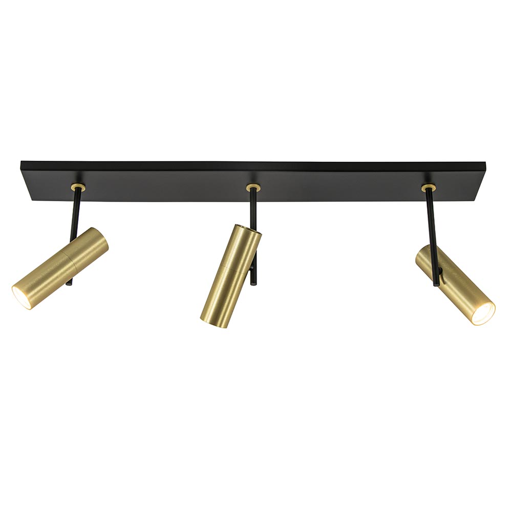 Strak van design en functioneel in gebruik. Deze 3-lichts opbouwspot is een perfecte aanvulling voor een hal, slaapkamer of overloop. De 3-lichts plafondlamp is voorzien van smalle cilinder-vormige spots die naar wens zijn te verstellen door deze gemakkelijk te draaien en/of kantelen. De spots zijn gemonteerd op een balk van 65 cm lang, beide gemaakt van metaal en uitgevoerd in het zwart met brass goud. De lichtbron kan gemakkelijk worden geplaatst door de cilinders open te draaien.
