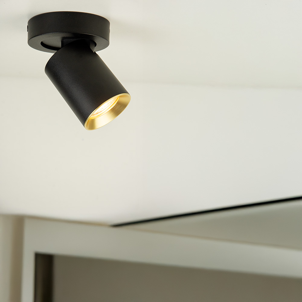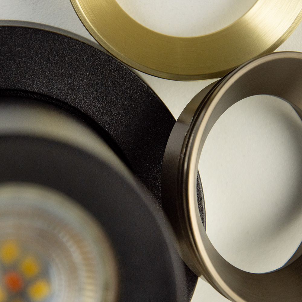 Bijzonder aan deze spot is de verwisselbare binnenring. Kies eenvoudig tussen drie meegeleverde ringen in zwart, goud of brons. Geef de lamp zo een subtiel andere uitstraling die past bij jouw interieur.
