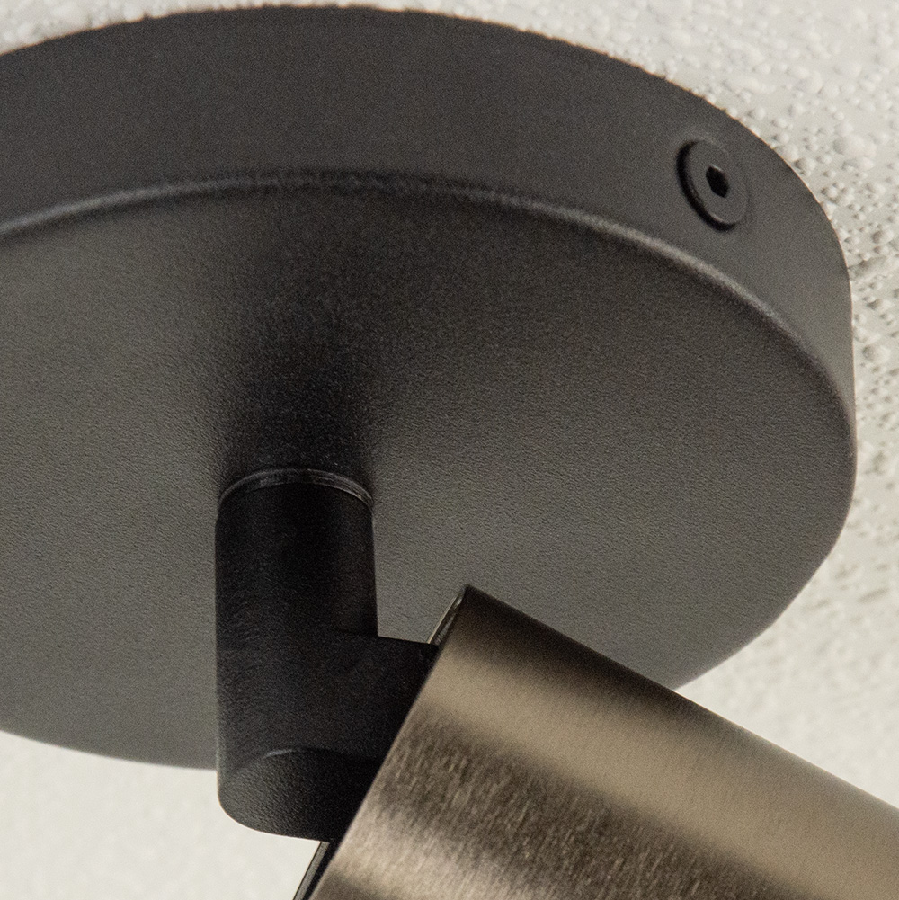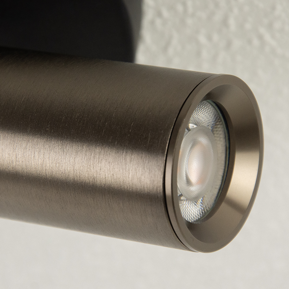 Deze strakke richtspot combineert minimalistisch design met hoogwaardige materialen. De cilindervormige lampkop is uitgevoerd in een stijlvolle geborsteld brons afwerking, wat zorgt voor een moderne maar warme uitstraling. De zwarte plafondplaat zorgt voor een mooi contrast en een stevige montage.