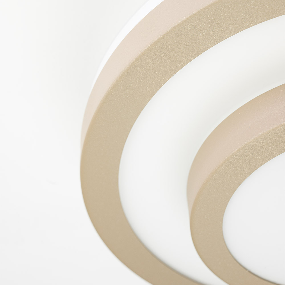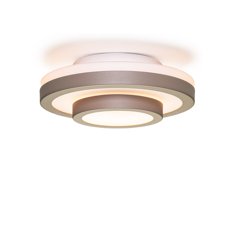 De Master plafonniere is een stijlvolle, ronde plafondlamp die rust en sfeer brengt in iedere ruimte. De metalen rand in zand/wit of warm bruin vormt samen met het witte opaalglas een harmonieus geheel. Het opaalglas verspreidt het licht gelijkmatig en voorkomt verblinding, waardoor een zachte en aangename basisverlichting ontstaat.