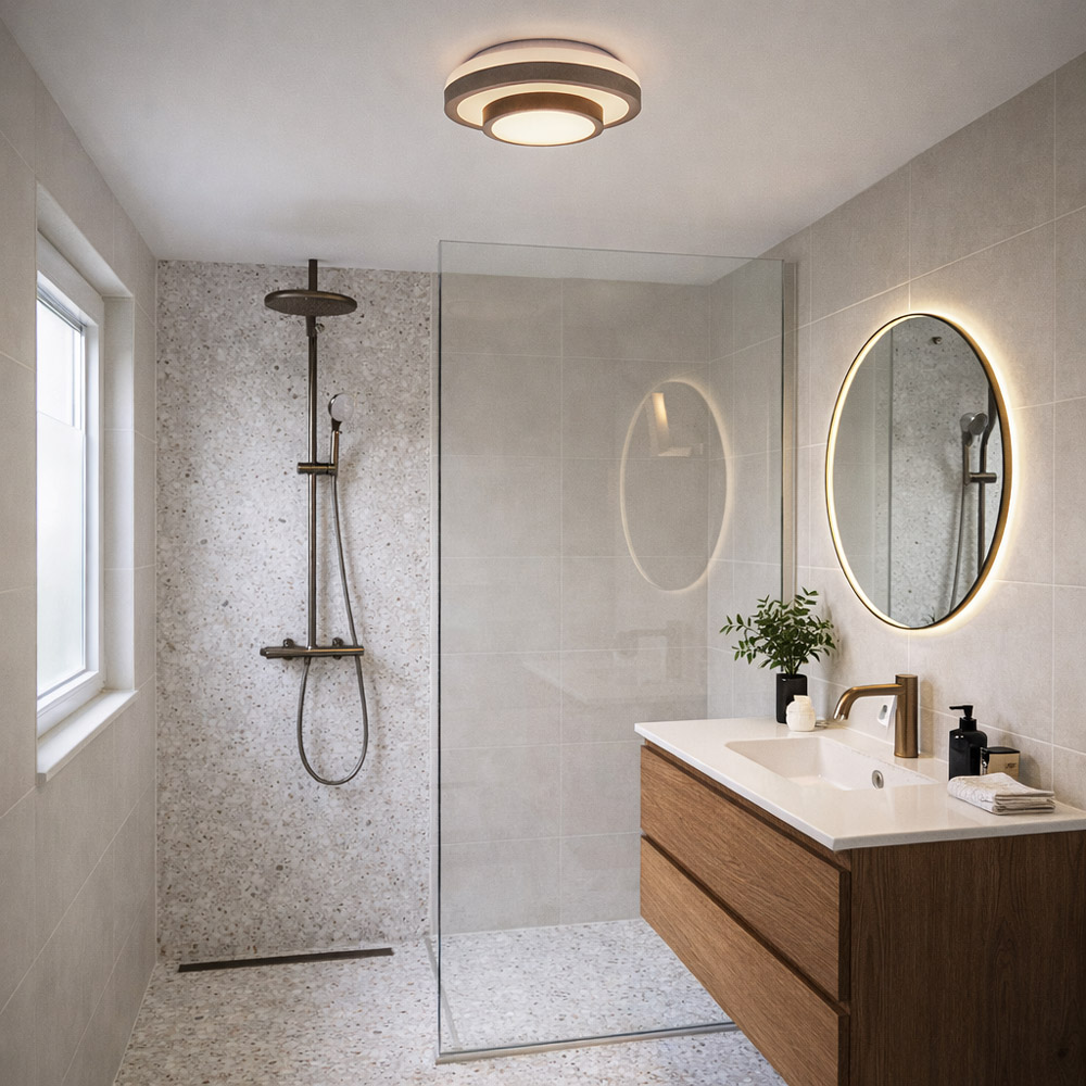 Dankzij de E27 fitting bepaal je zelf de sfeer. Kies voor helder wit licht in de badkamer of hal voor een functioneel effect, of ga voor een warme lichtbron in de slaapkamer of het toilet voor een meer sfeervolle uitstraling. Ideaal voor een badkamerplafond buiten de natte zone, een entree of een compacte woonruimte.