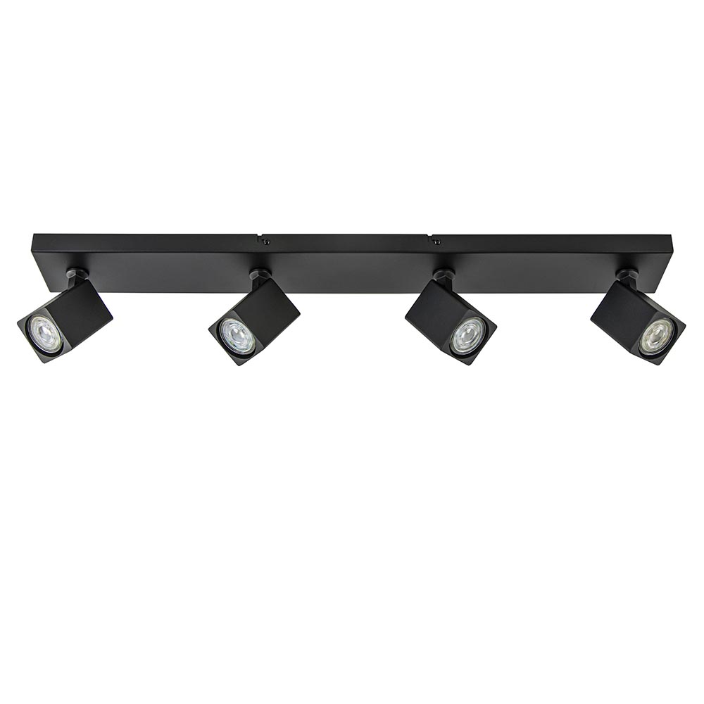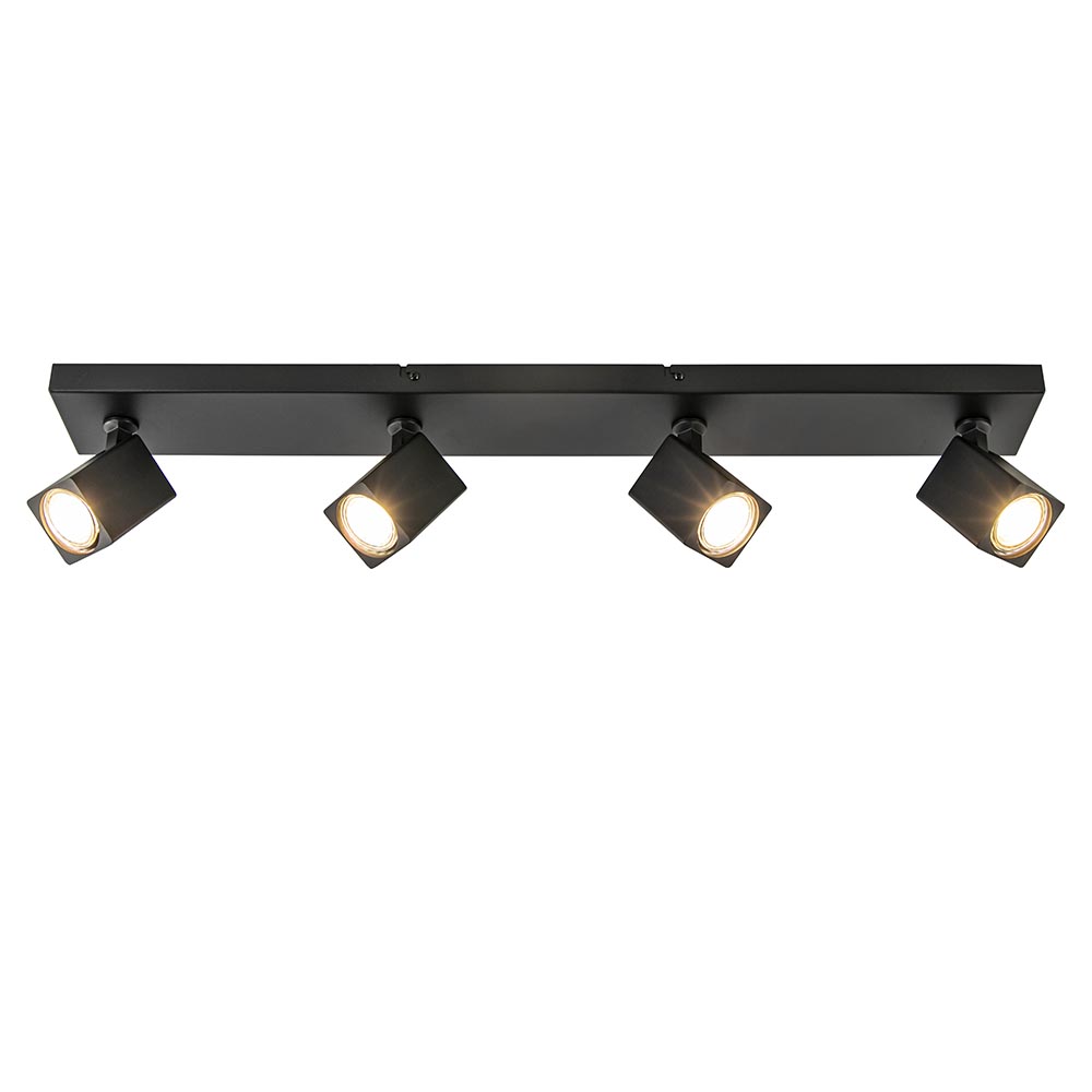 – afm: 75x10x14 cm – bevestiging: 75x10x2,5 cm – spots: 6x6x8 cm – metaal – zwart – verstelbaar – exclusief lichtbron (4x GU10) – dimbaar (exclusief)