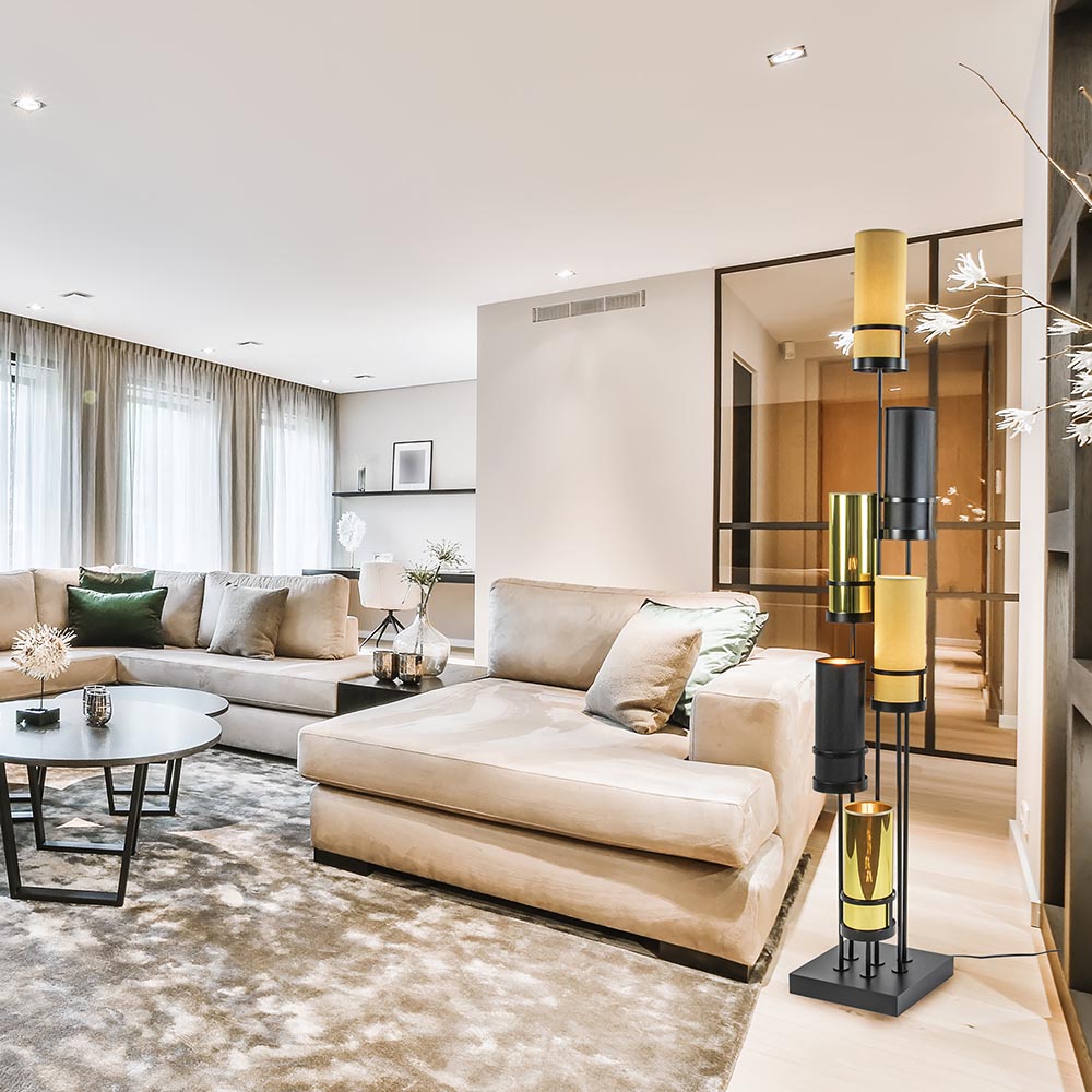 / Lampen / Vloerlampen / Design vloerlamp met cilinder kappen zwart/goud