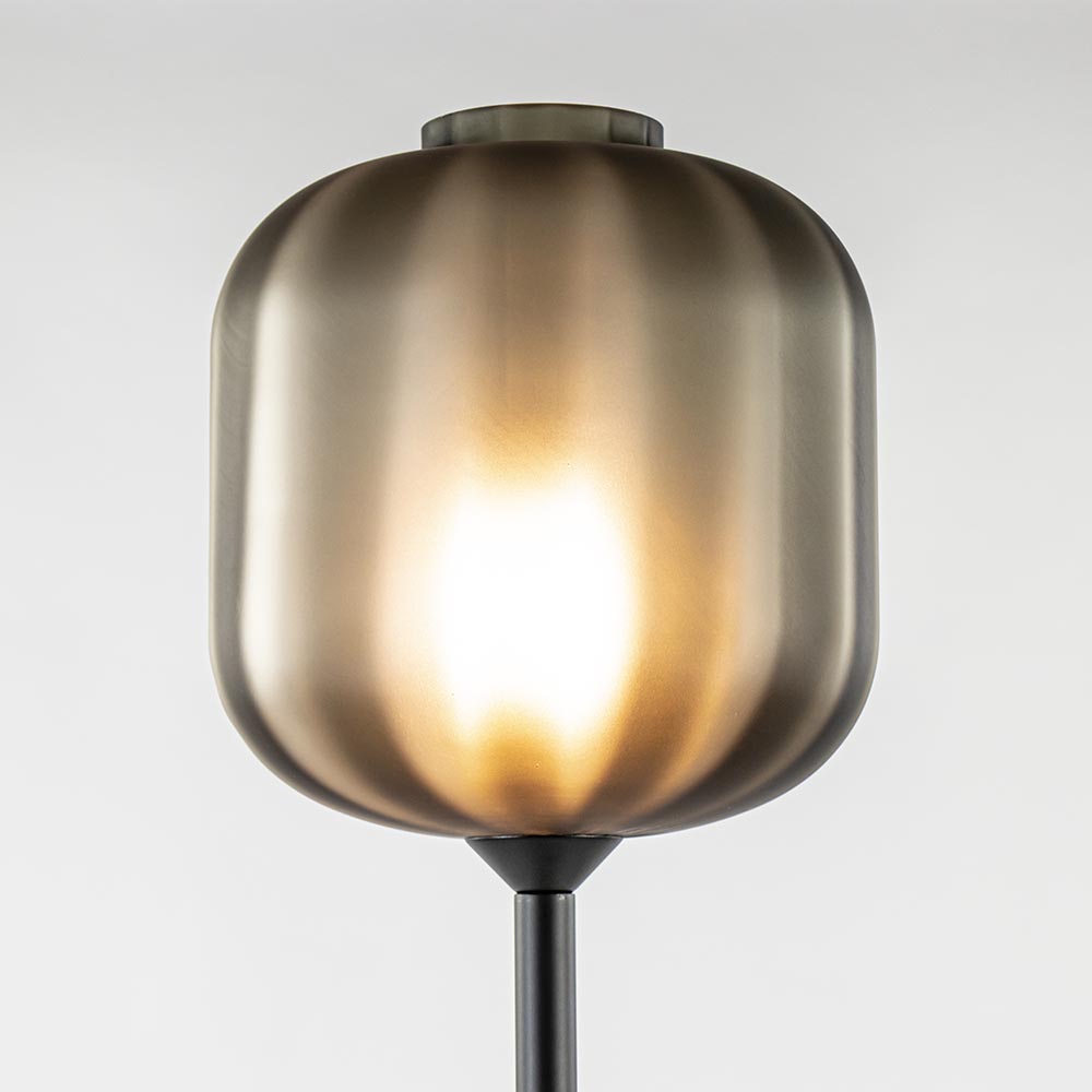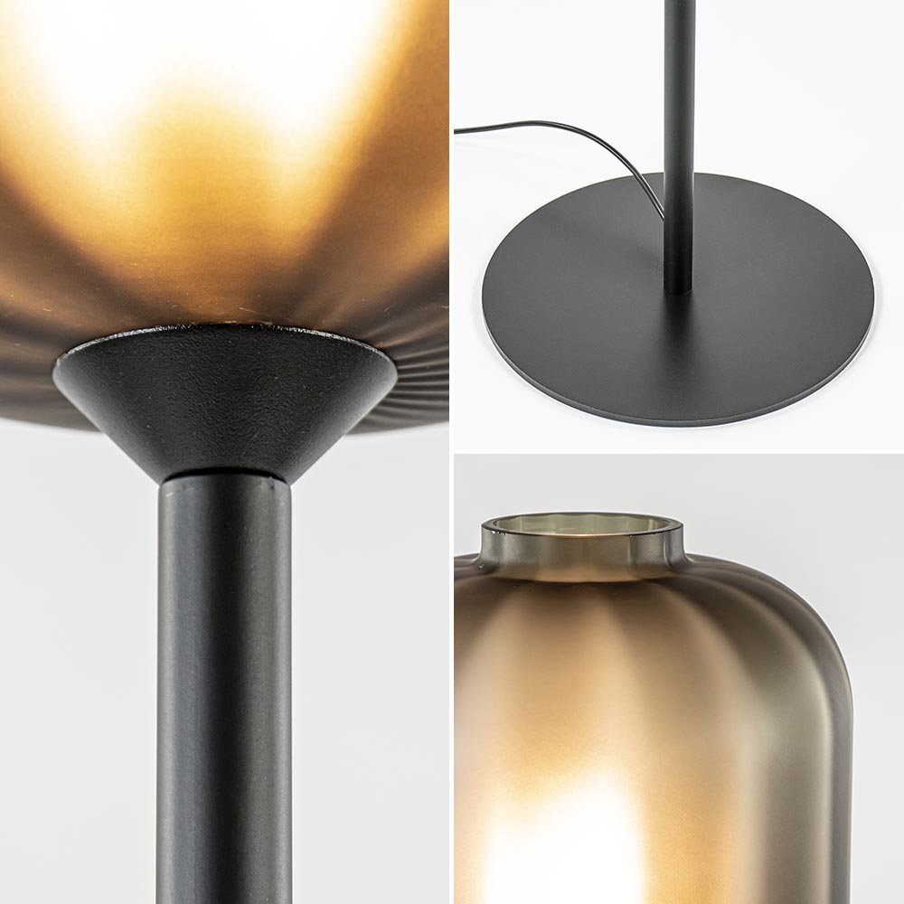 Deze prachtige vloerlamp is een mooie toepassing in het interieur. Bijzonder aan de vloerlamp is vooral de kap. Deze is gemaakt van glas en uitgevoerd in het mat zwart. Dit geeft de vloerlamp een stoere en chique uitstraling. Het metalen armatuur is eveneens in het mat zwart uitgevoerd. De combinatie maakt de staande lamp prima geschikt voor diverse woonstijlen, van stoer tot luxe. De vloerlamp is voorzien van een zwart snoer en wordt exclusief lichtbron geleverd.