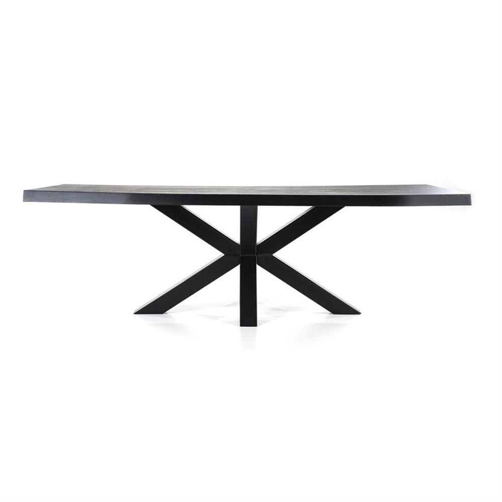 / Wonen / Eettafels / Eiken boomstam tafel met spinpoot zwart 240×100 cm