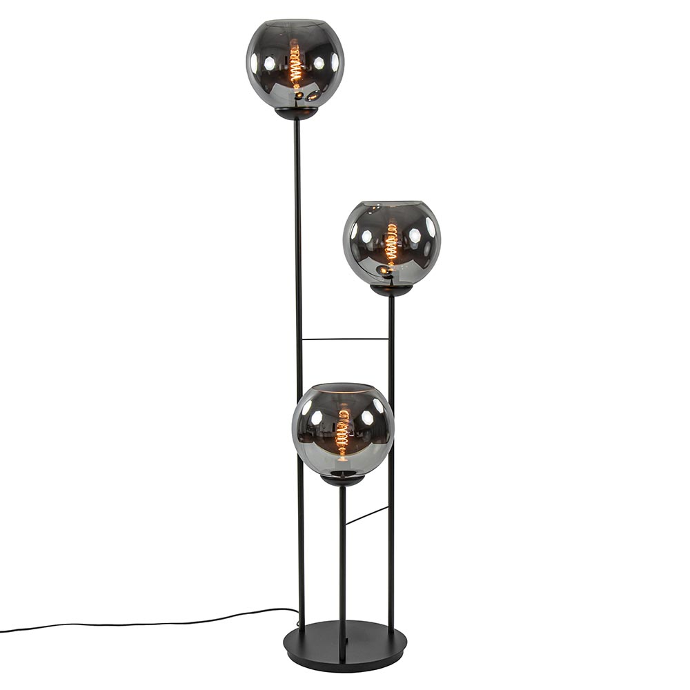 / Lampen / Vloerlampen / Hotel chique 3-lichts vloerlamp zwart met smoke/titanium glas