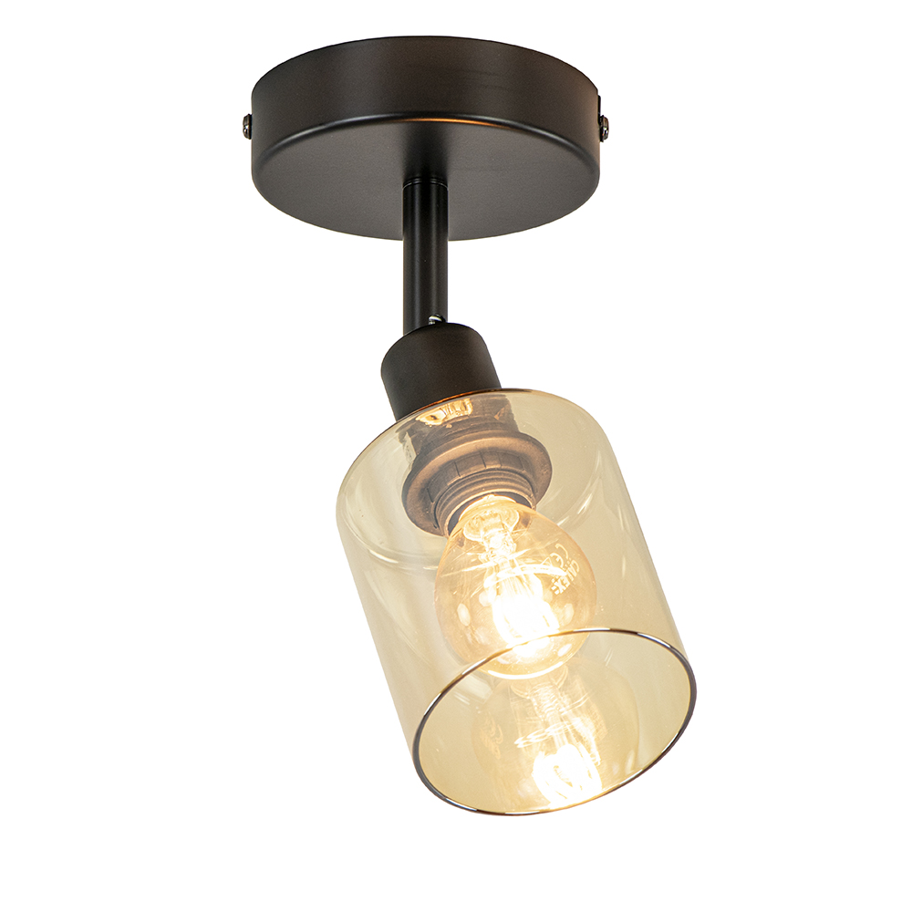 / Lampen / Plafondlampen / Kleine plafondlamp zwart met amber glas