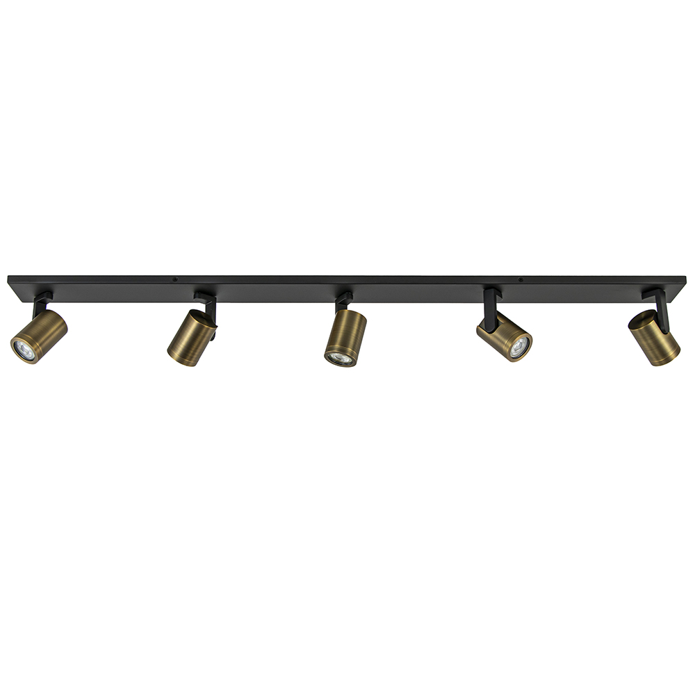 – afm: 118×9,5×15 cm – bevestiging: 118×9,5×1,5 cm – kappen: Ø6×8,5 cm – metaal – mat zwart/brons – verstelbaar – exclusief lichtbron (5x GU10) – dimbaar (exclusief)