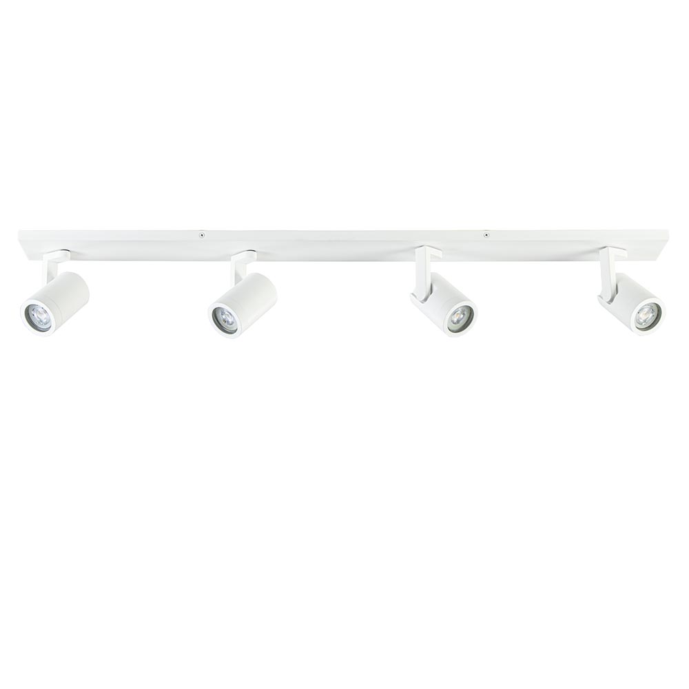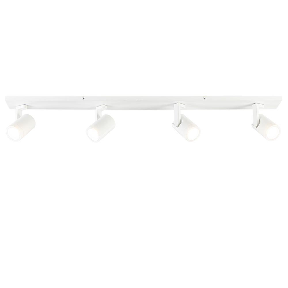 – hoogte: 15 cm – spots: Ø6×9 cm – bevestiging: 91,5×9,5×1,5 cm – metaal, mat wit – verstelbare spots – exclusief lichtbron (4x GU10) – dimbaar (exclusief)