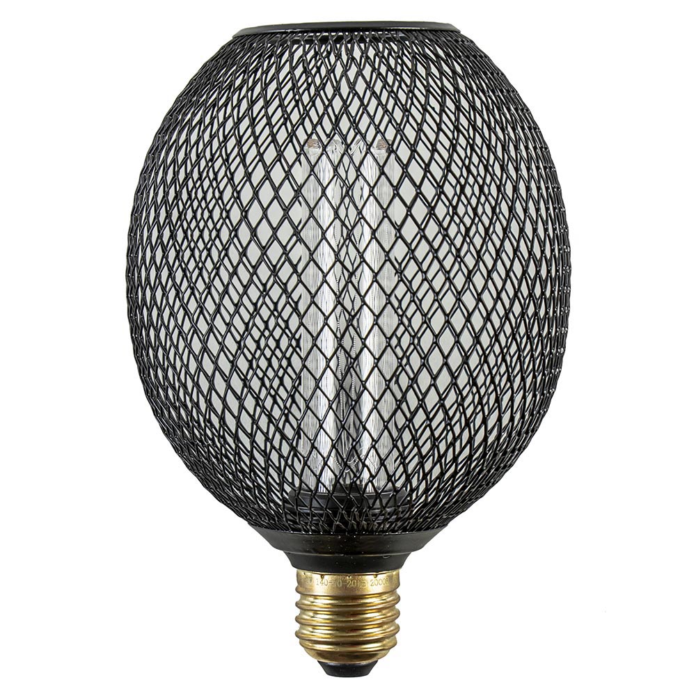 Een decoratieve lichtbron zoals we deze nog niet eerder zagen. De LED lichtbron is voorzien van een E27 fitting en een 3-standen dimfunctie. Dit werkt gemakkelijk met de lichtschakelaar in een snoer of op de wand. Schakel gemakkelijk tussen de 3 standen en bepaal snel de juiste sfeer. Bijzonder aan deze lichtbron is dat deze niet van glas is, maar voorzien van een zwart metalen gaaskap. Dit geeft de lichtbron een stoere look en zorgt dat de lichtbron mooi als decoratief sfeerlicht werkt.