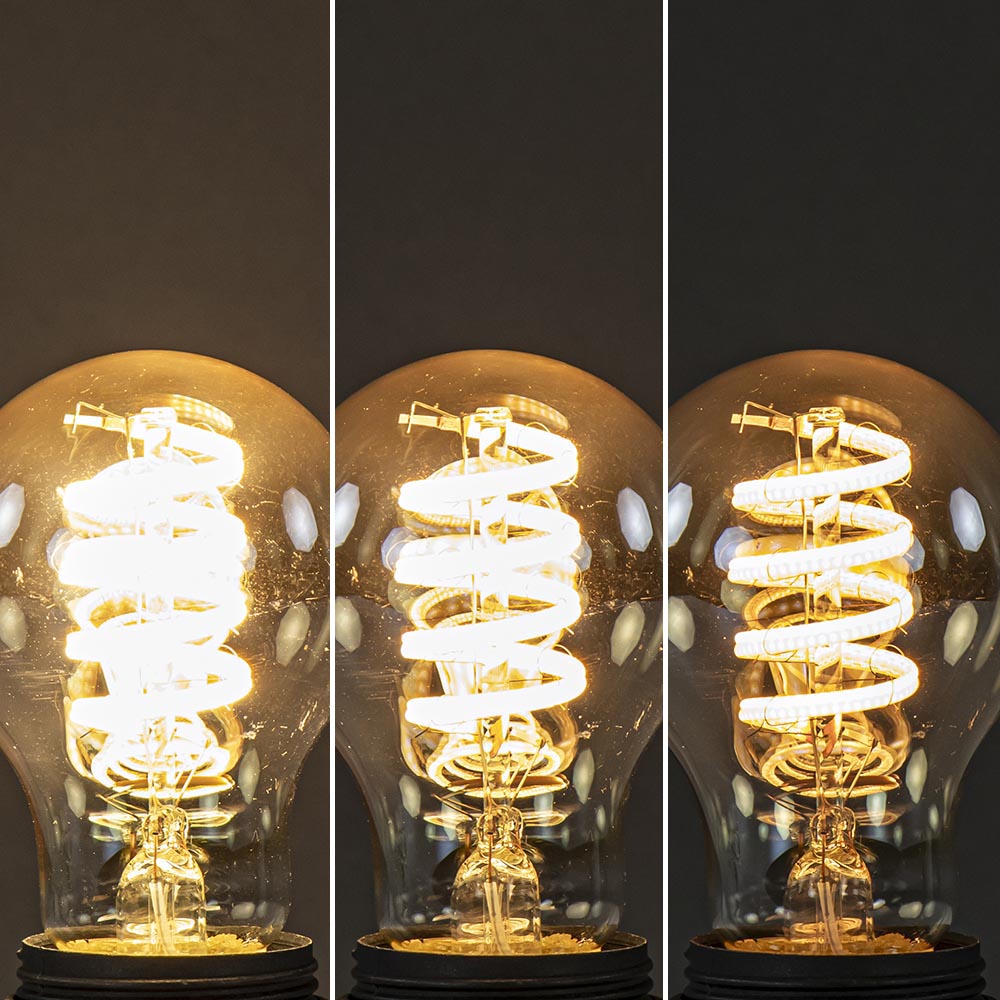 Deze decoratieve lichtbron is een perfecte toevoeging aan uw lamp. De A60 LED lichtbron is voorzien van een 3-standen dimfunctie. Dit werkt gemakkelijk met een gewone schakelaar. U heeft dus geen externe dimmer nodig. Zodra u de lamp aanzet begint deze in de felste stand. Per keer dat u de schakelaar aan en weer uit zet dimt de lamp een stap verder. Laat u een stand wat langer staan dan wordt deze onthouden dmv de memory functie. De LED lamp heeft een decoratieve spiraal en is uitgevoerd in het goud.