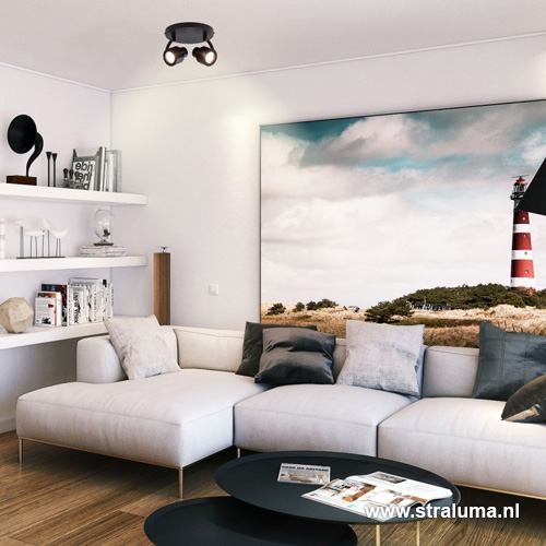 / Lampen / Opbouwspots / Moderne plafondspot mat zwart 2-lichts