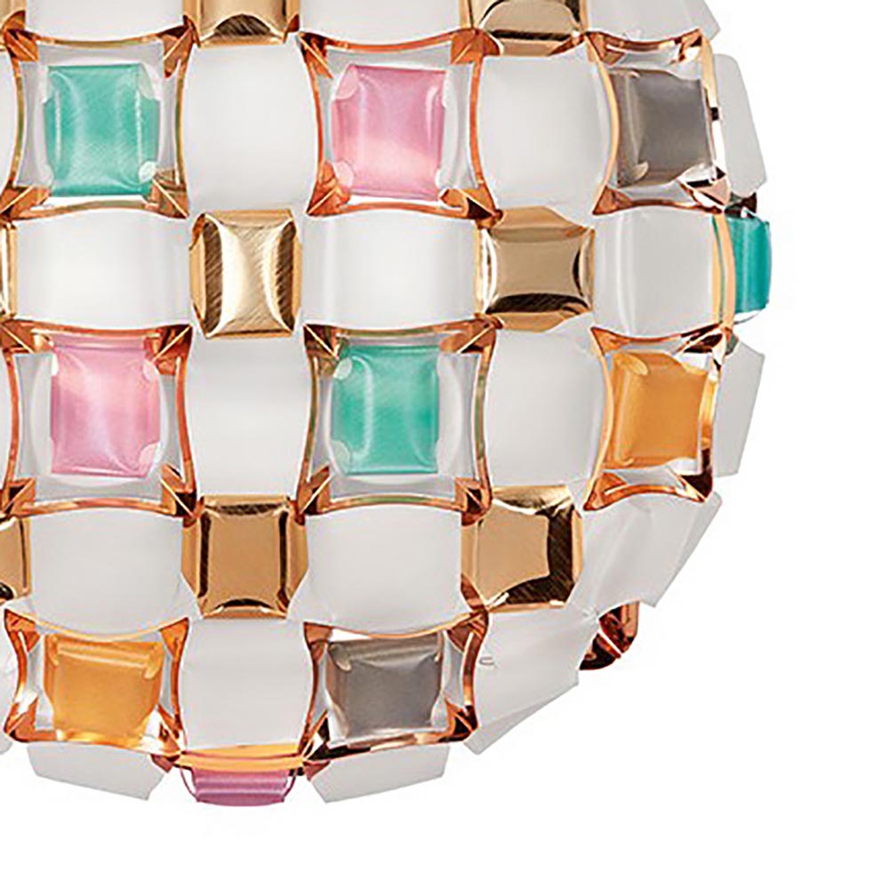 Design van Italiaans komaf. Deze luxe plafondlamp van ‘Slamp’ is ontworpen door Adriano Rachele en straalt een en al luxe en glamour uit. De plafonnière is geïnspireerd op juwelen uit de haute couture. De plafondlamp doet dan ook meteen denken aan edelstenen en diamanten. De geometrische kap bestaat uit losse elementen die samen de kap vormen en zijn gemaakt van opalflex en lentiflex, beide materialen die zorgen voor de extra luxe uitstraling. De kap wordt met een magnetisch ophangsysteem aan de bevestiging opgehangen en de lamp is geschikt voor zowel het plafond als de muur. Waar deze Italiaanse designlamp ook komt te hangen, het geeft meteen sfeer, luxe en vooral glamour aan het interieur.