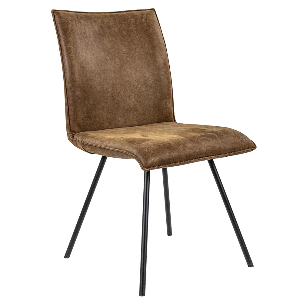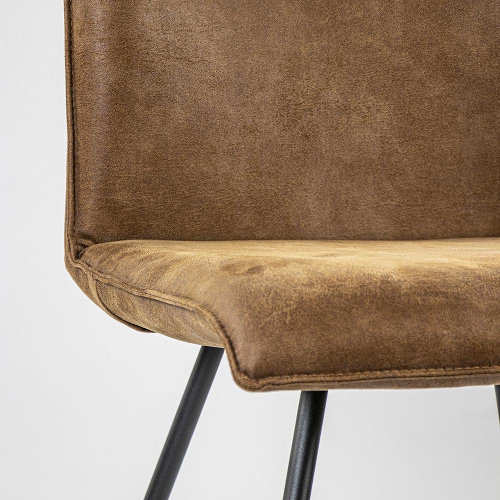 Een landelijke eetkamerstoel met een modern trendy afwerking. De eettafelstoel heeft een dikke zitting die zorgt voor een fijn zitcomfort. Ideaal tijdens het lange tafelen en natafelen. De zitting loopt mooi door in de rugleuning en is volledig gemaakt van PU leder in een mooie camel kleur. De zitting is afgewerkt met opstaand randje. De stoel wordt ondersteund door vier smalle gepoedercoate metalen pootjes in het mat zwart die de landelijke stoel een wat moderne touch geven.