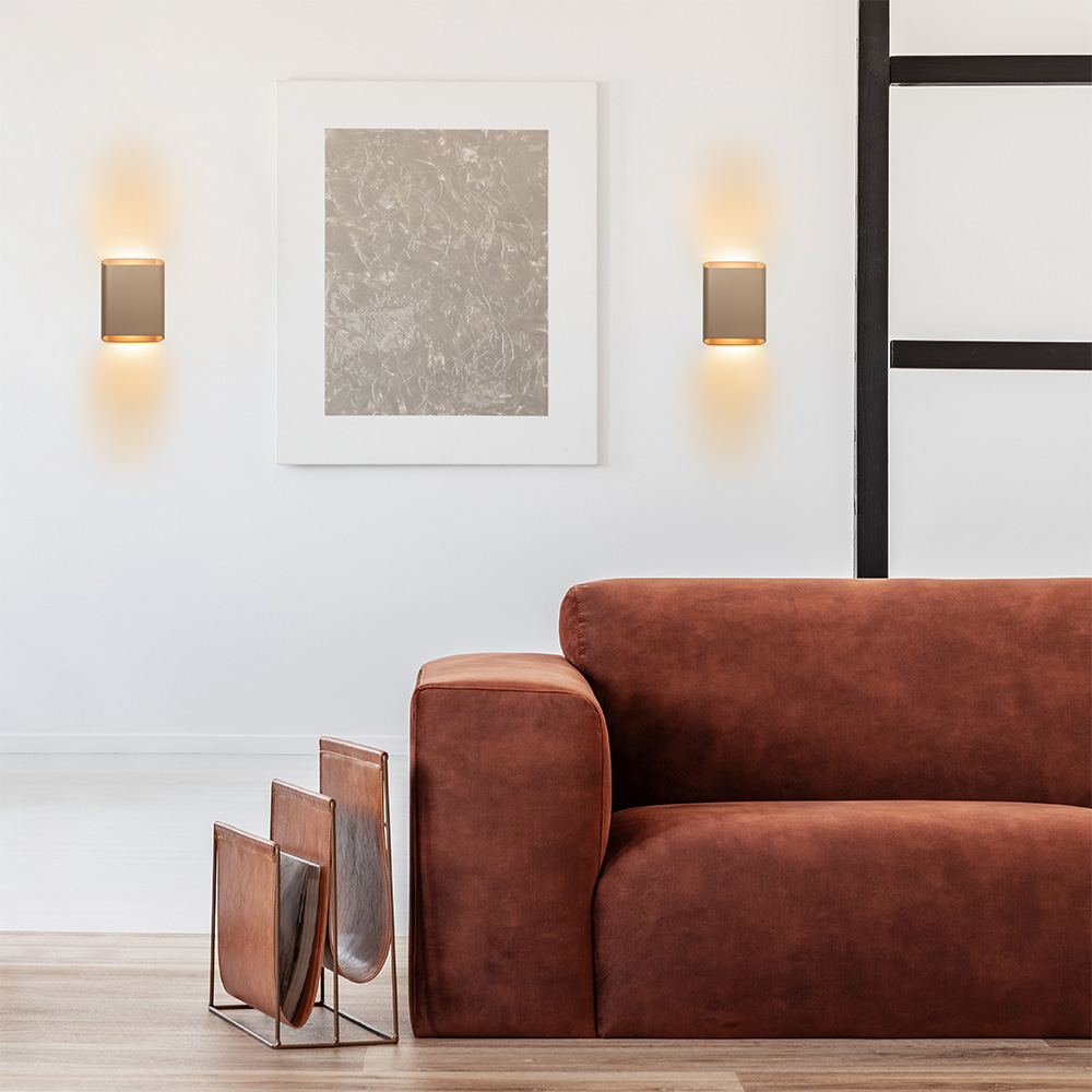 Mooi strak design wandlamp uitgevoerd in de kleur champagne. Een mooie sfeermaker voor in de hal, woonkamer of slaapkamer. De wandlamp is klein van stuk maar zorgt voor een groot effect in de ruimte. Deze bronze wandlamp werkt als een up- & downlighter, hij geeft zowel licht naar boven als naar beneden langs de muur doormiddel van geïntergreerd LED. De wandlamp is dimbaar middels een externe dimmer. Details: