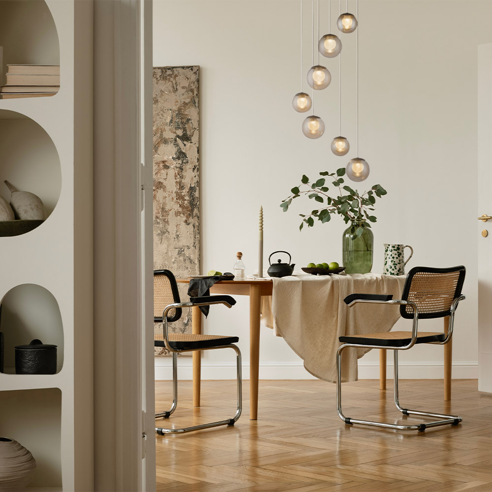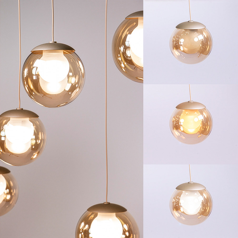 De Pure-E Popup van Paul Neuhaus is een moderne eyecatcher die elegantie en innovatie combineert. Deze ronde 7-lichts hanglamp met bronskleurige afwerking en heldere glazen bollen (Ø10 en Ø12 cm) vormt een echte blikvanger boven je eettafel of kookeiland. De verschillende hoogtes van de lichtpunten geven een luchtige en levendige uitstraling aan het geheel.