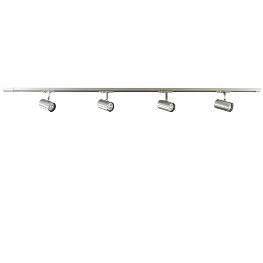 Railsysteem 1,5m nikkel met 4 verstelbare spots