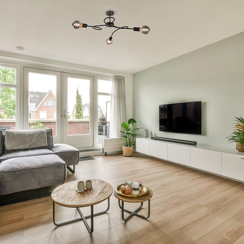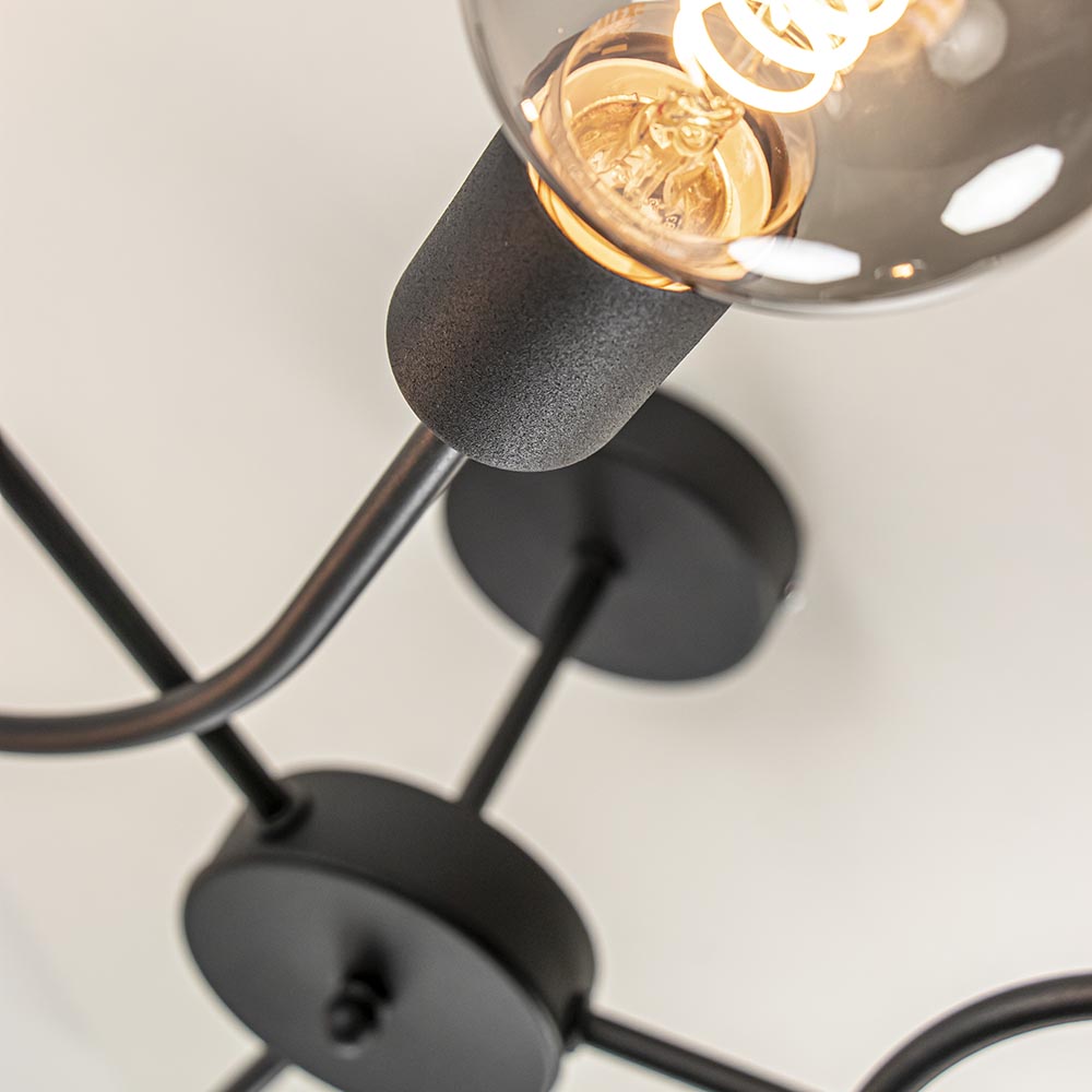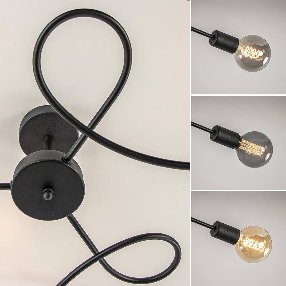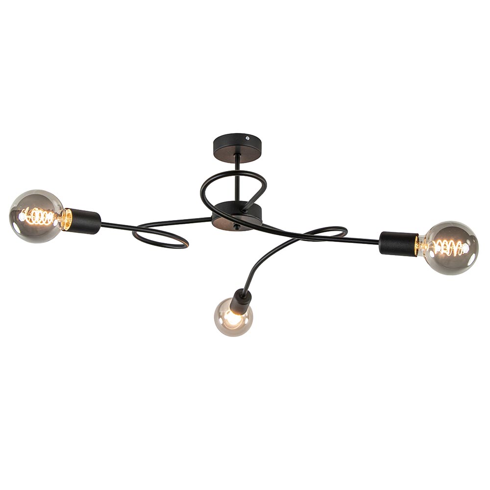Een speelse plafondlamp met elegante lijnen. De armen van het armatuur zijn voorzien van een krul wat die retro/elegante look geeft aan de plafondlamp. Het armatuur is gemaakt van metaal en voorzien van een mat zwarte finish. De lichtbron is bepalend voor de sfeer van de lamp. Deze is exclusief. Zo kunt u zelf de ideale lichtbronnen kiezen die passen bij uw woonstijl. De mat zwarte 3-lichts plafondlamp is dimbaar middels een externe dimmer (exclusief) en is een mooie toevoeging aan een slaapkamer of woonkamer.