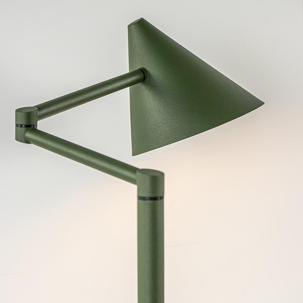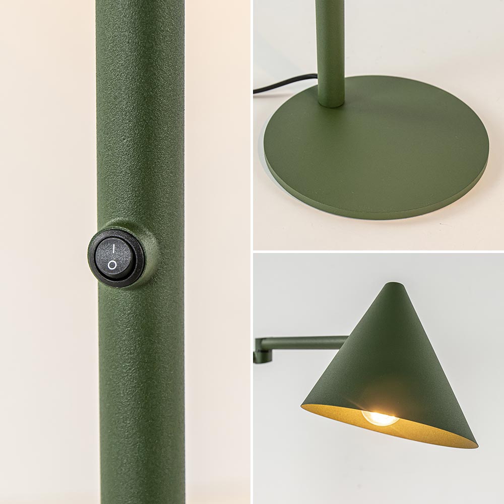 – afm: 50x20x56 cm – kap: Ø18×16 cm – voet: Ø20×1 cm – metaal – groen – verstelbaar – zwart snoer: 180 cm – exclusief lichtbron (E27)