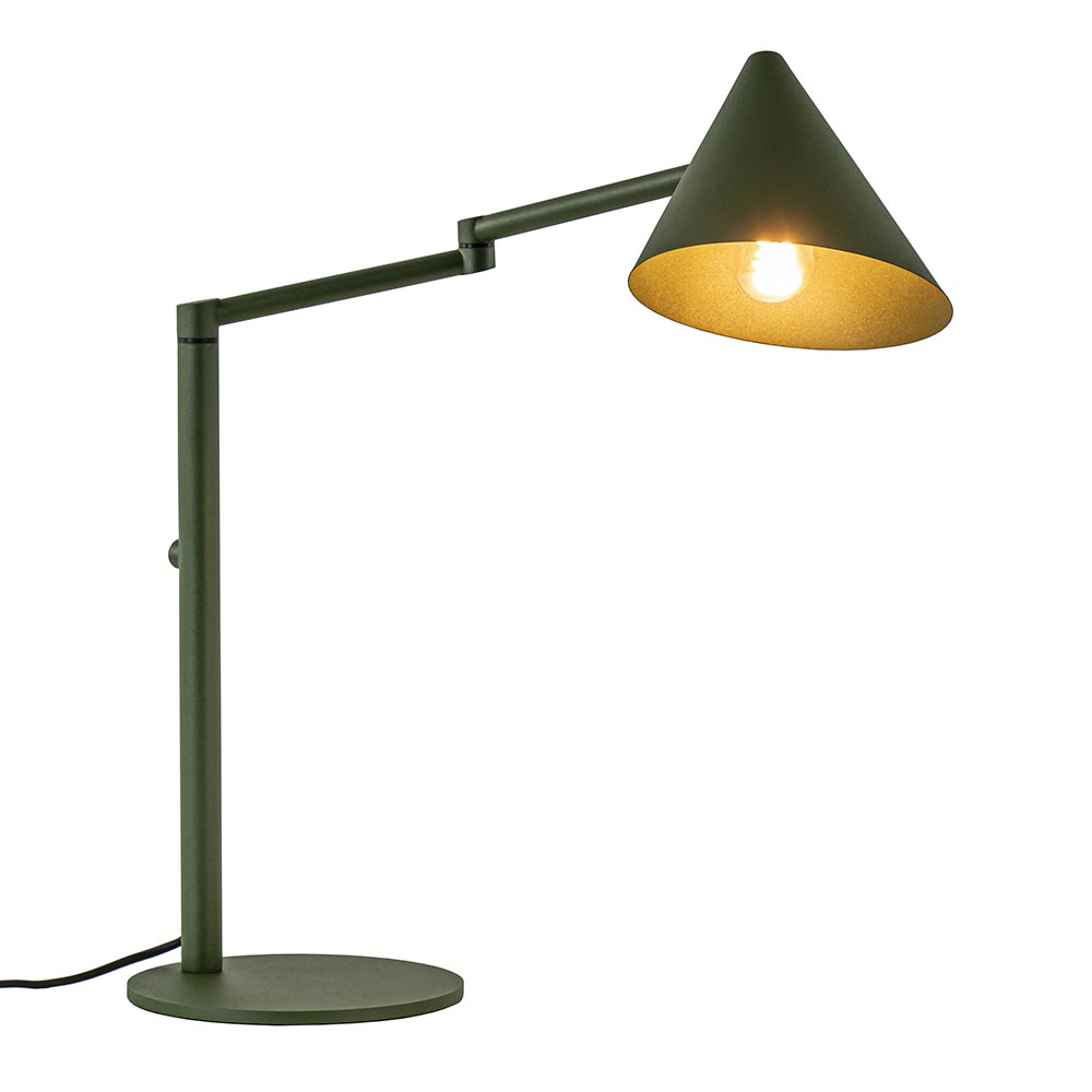Deze tafellamp past perfect in een retro of vintage interieur. De tafellamp is gemaakt van metaal en uitgevoerd in het groen. Dit geeft de lamp echt die vintage uitstraling. Het armatuur is verstelbaar door de arm te kantelen en de kap te draaien. Zo kunt u de lamp helemaal naar wens verstellen. Ook ideaal voor op een bureau. De retro tafellamp heeft een schakelaar op het armatuur en is voorzien van een zwart snoer met een lengte van 180 cm. De groene tafellamp wordt geleverd exclusief lichtbron.
