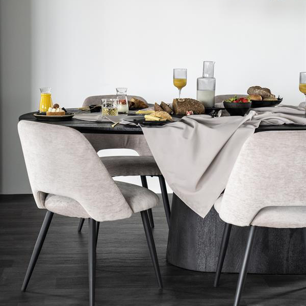 Deze robuuste eettafel is mooi te combineren in diverse woonstijlen. De tafel is gemaakt van mangohout en afgewerkt in het zwart. De tafel heeft een grove poot met een dun blad van 4 cm. Dit geeft een tafel een luxe en chique uitstraling. De tafel is ovaal van vorm en heeft een lengte van 250 cm en een breedte van 110 cm. Zo is er genoeg ruimte om heerlijk te dineren met een grote groep.