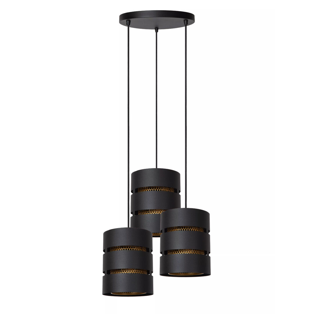 – afm: Ø43×165 cm – kappen: Ø18×22 cm – bevestiging: Ø30×2,5 cm – metaal – zwart/goud – in hoogte verstelbaar – dimbaar (exclusief) – exclusief lichtbron (3x E27)