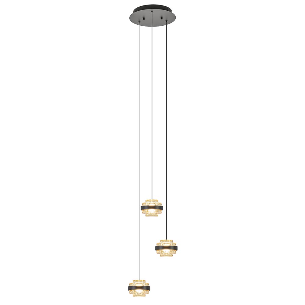 / Lampen / Eettafellampen / Ronde 3-lichts hanglamp zwart/champagne LED