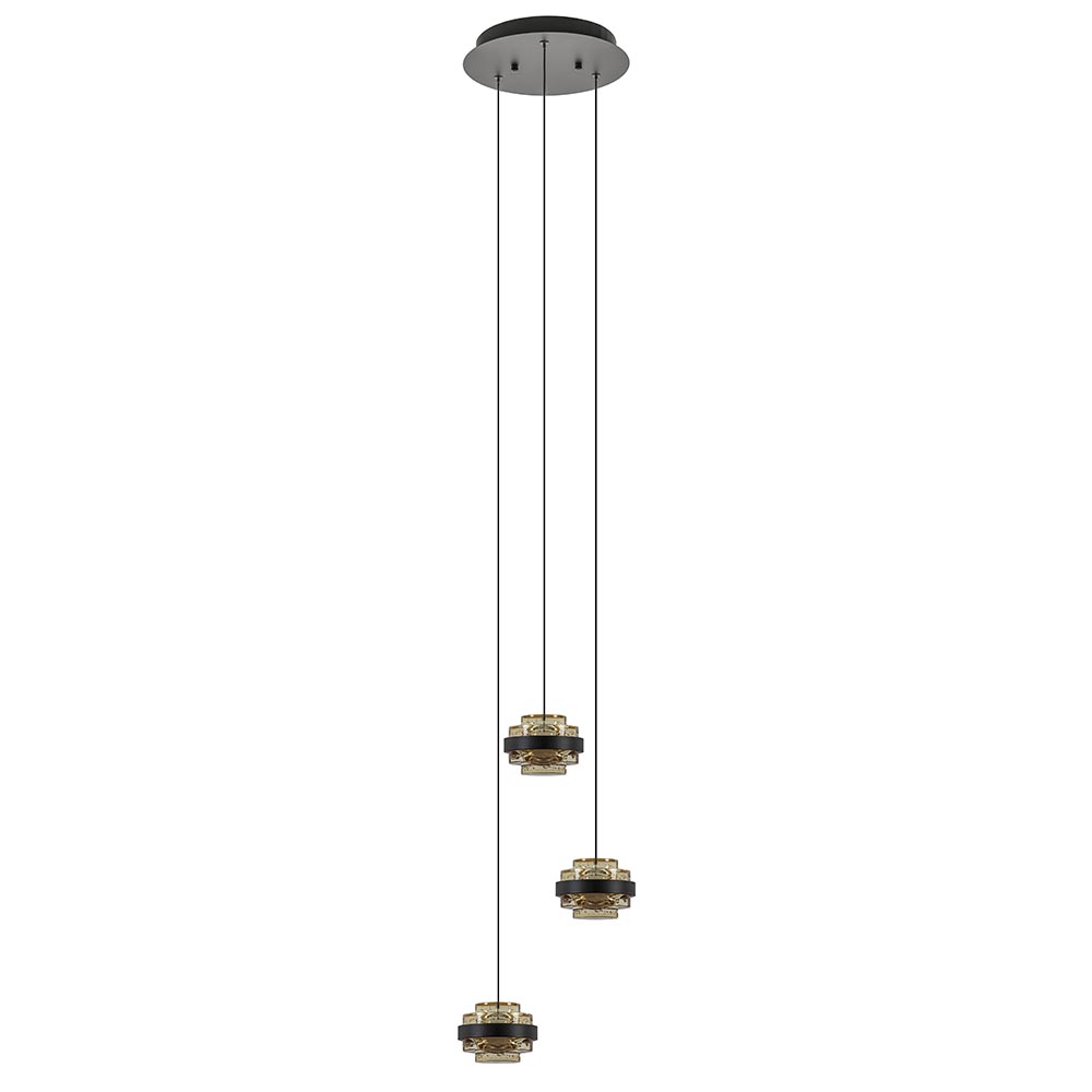 Ronde 3-lichts hanglamp zwart/champagne LED